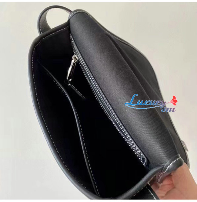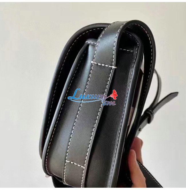 버버리 로고와 스티치 디테일의 가죽 트리밍이 돋보입