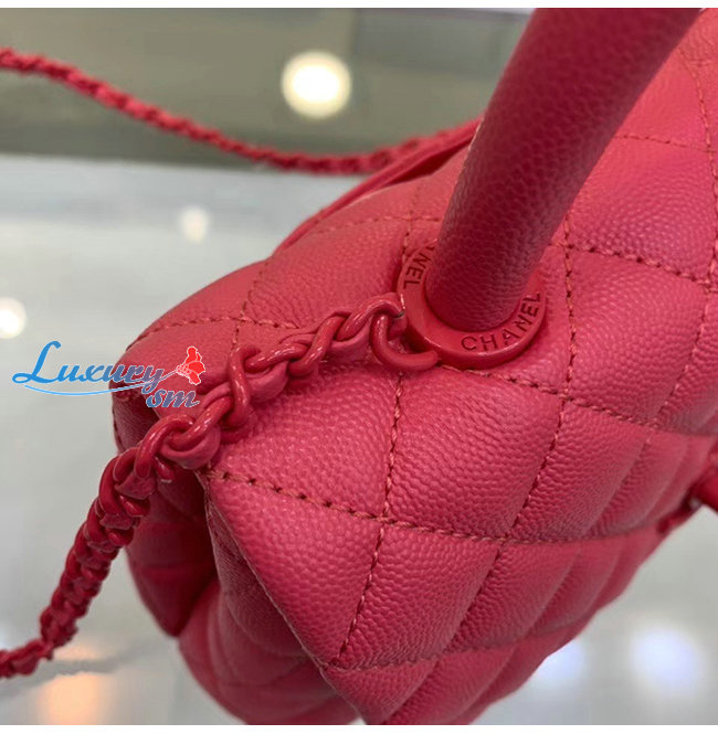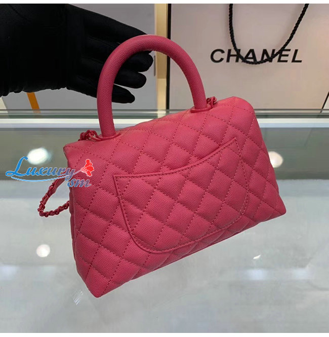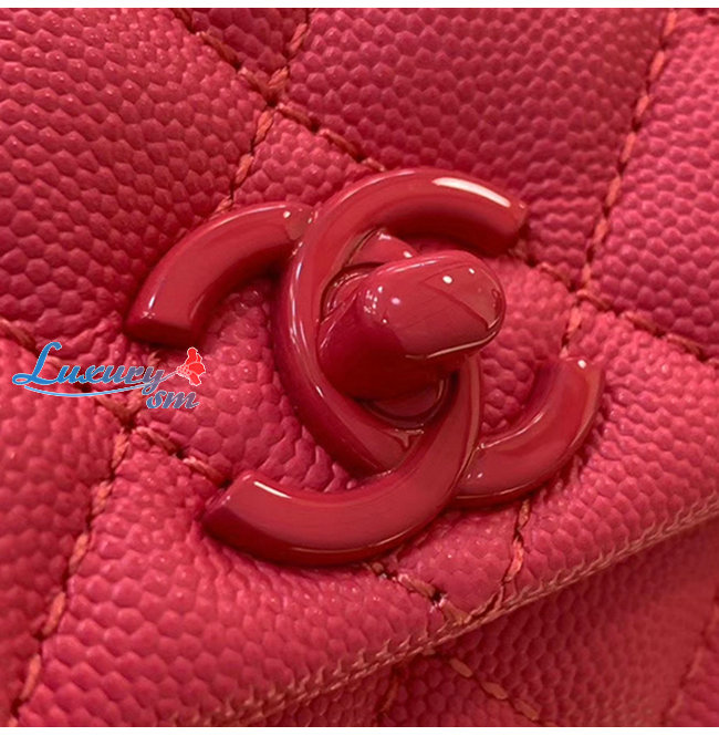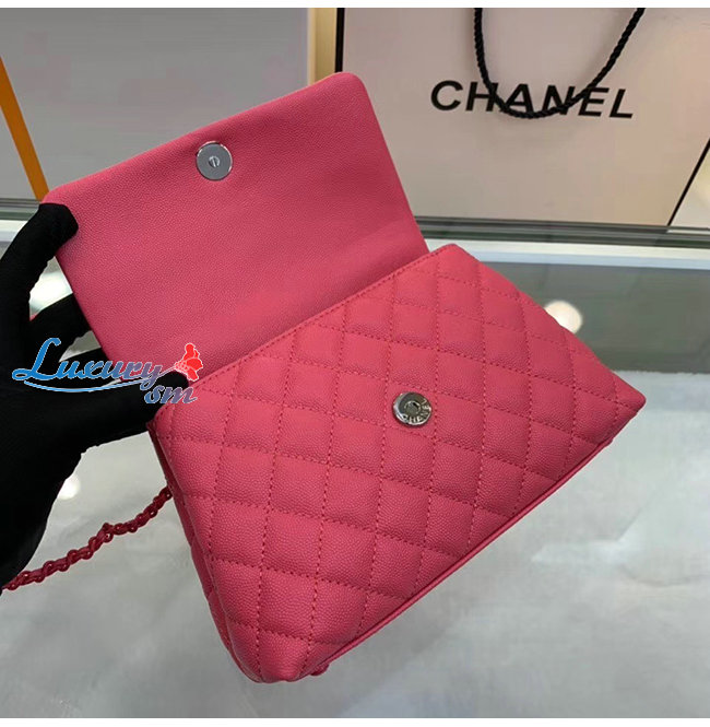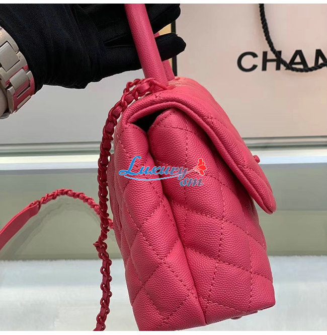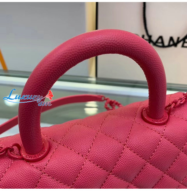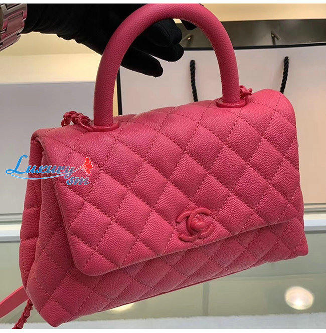 [스페셜오더]CHANEL-A92990 샤넬 핑크 그레인드 카프스킨 래커드 메탈 핸들 장식 플랩 백