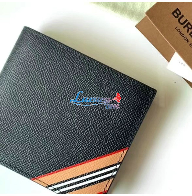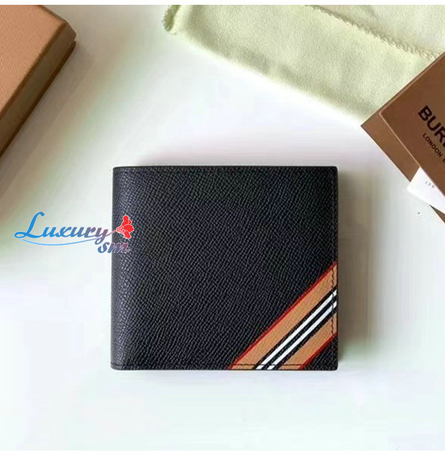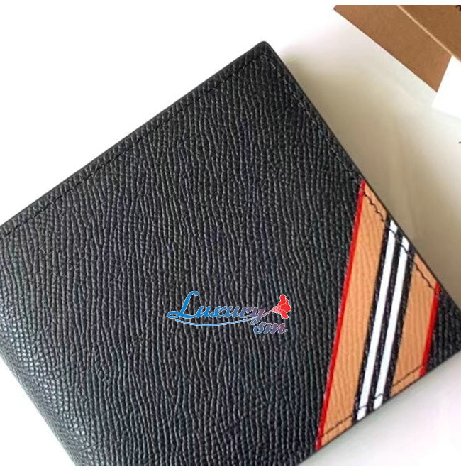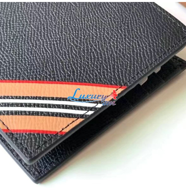 [스페셜오더]BURBERRY-80330721 버버리 블랙 송아지 가죽 아이콘 스트라이프 프린트 반지갑