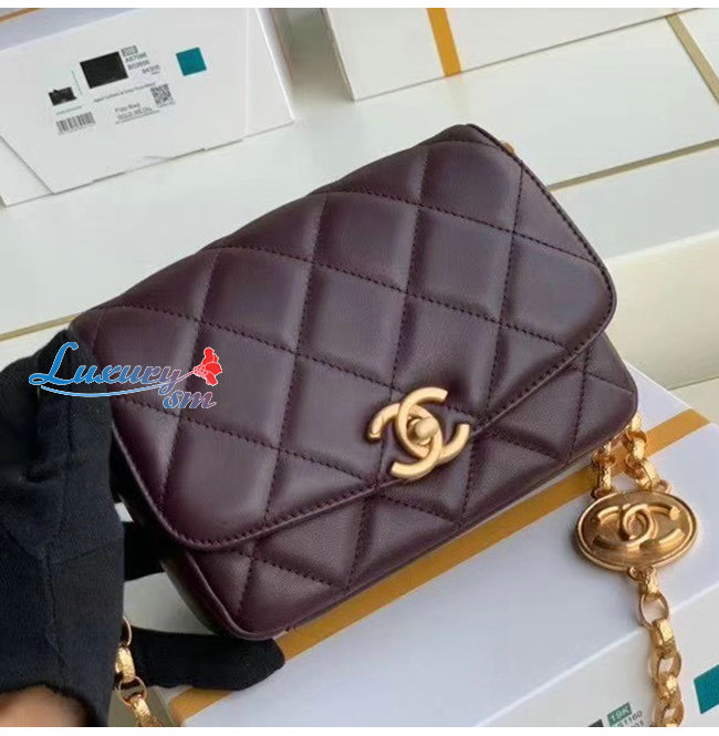 [스페셜오더]CHANEL-AS2189 샤넬 퍼플 램스킨 골드 메탈 스몰 플랩 백