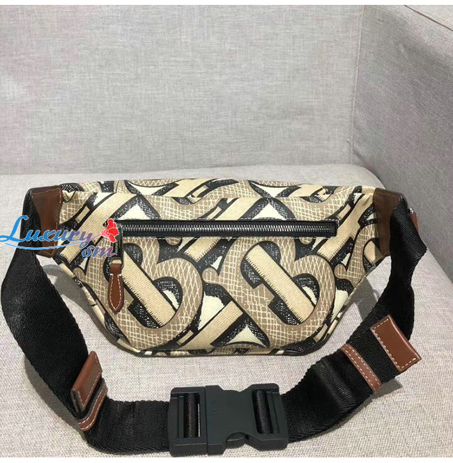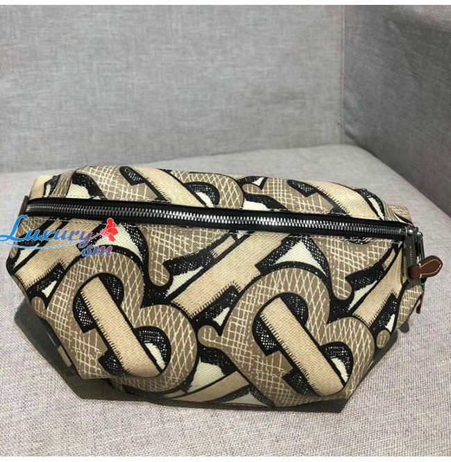 [스페셜오더]BURBERRY-80324711 버버리 다크 베이지 모노그램 프린트 E-캔버스 쏘니 범 백