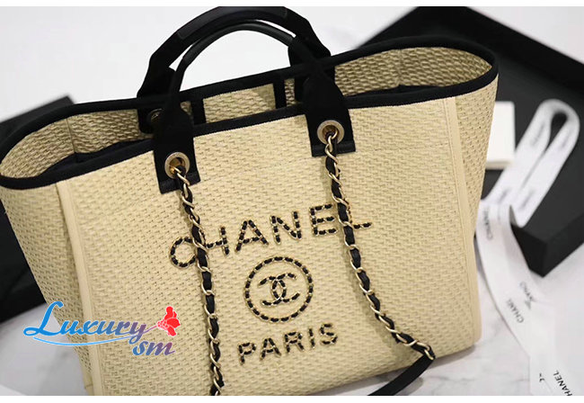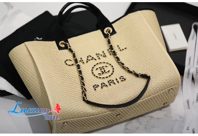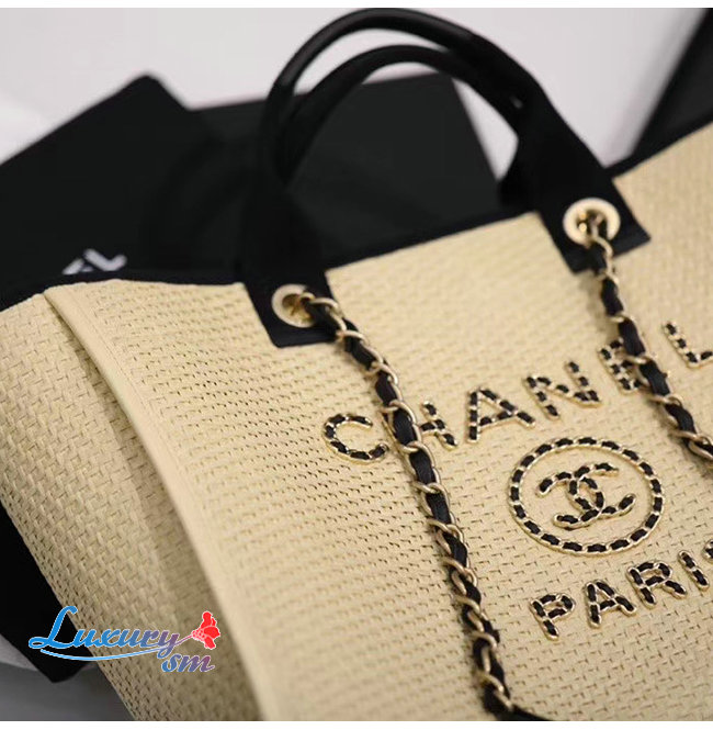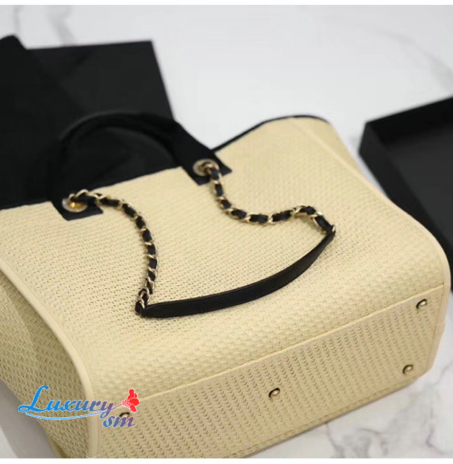 [스페셜오더]CHANEL-A66941 샤넬 베이지 스트로 카프스킨 골드 메탈 라지 쇼핑백