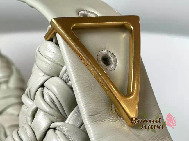 ▶보테가 베네타의 시그니처 삼각형 버클 장식
