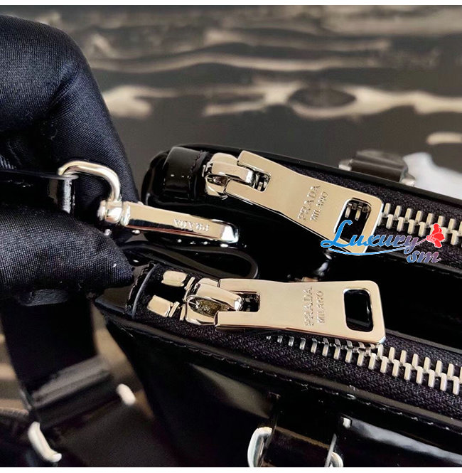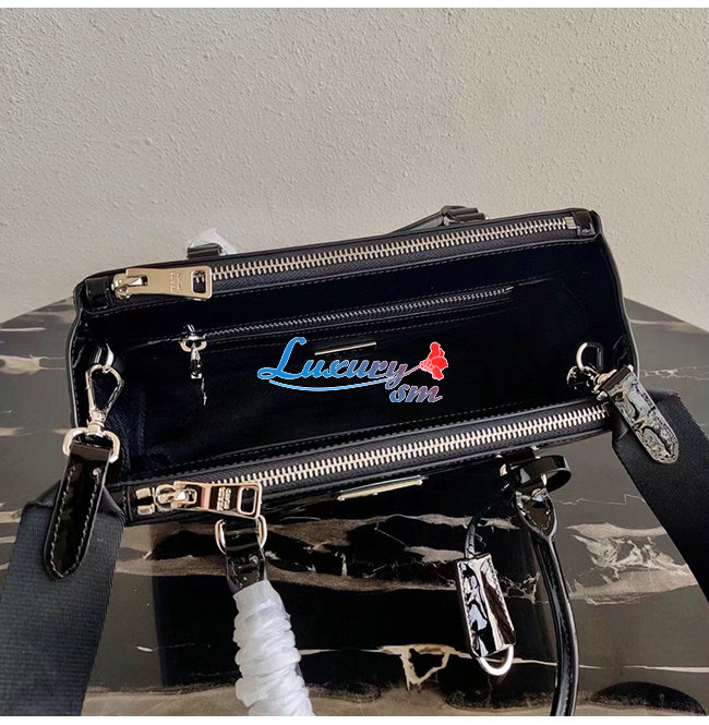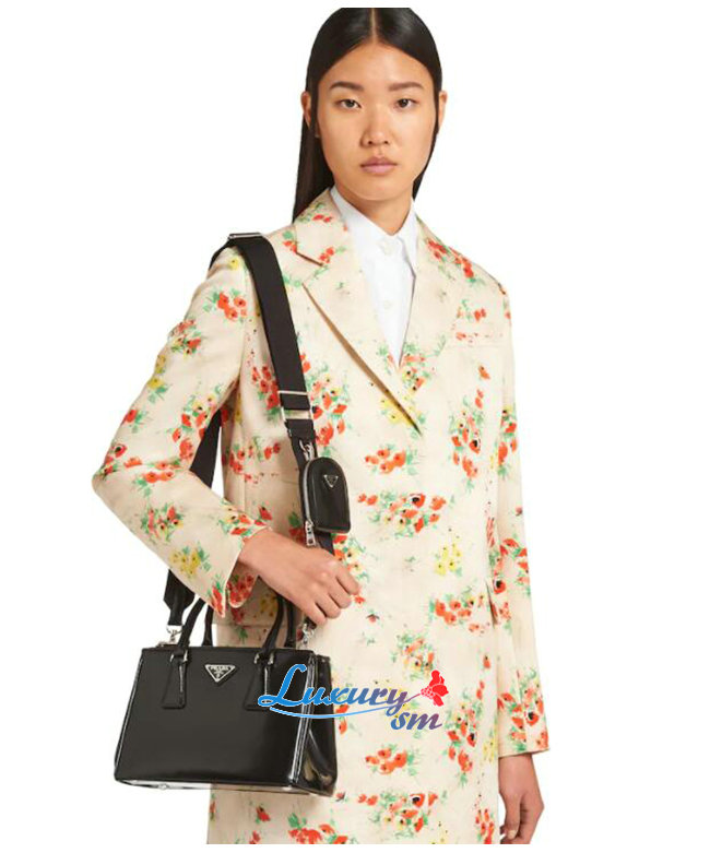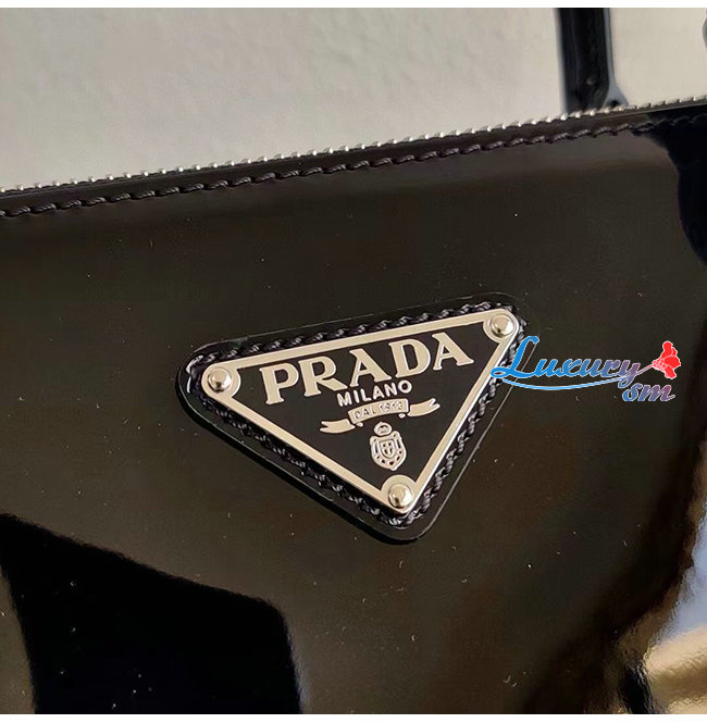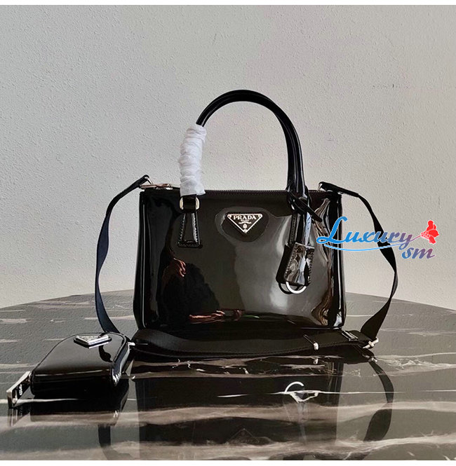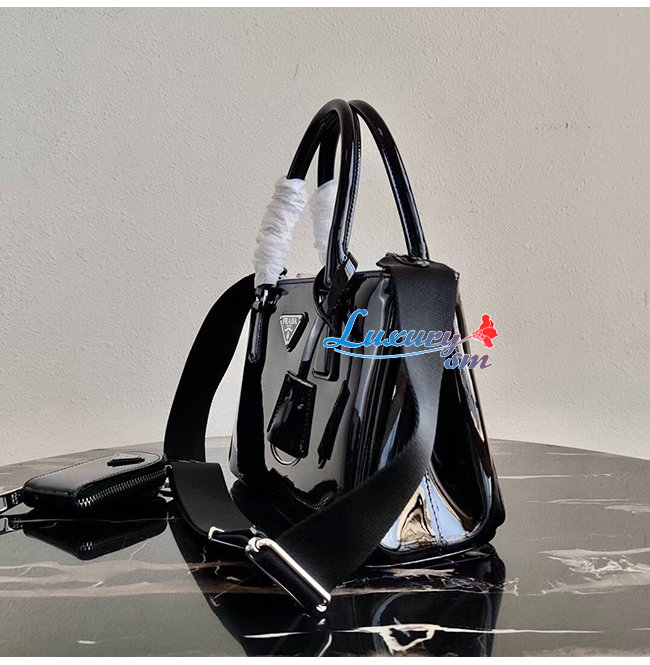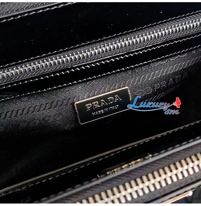 [스페셜오더]PRADA-1BA896 프라다 블랙 블러시드 가죽 갤러리아 탑 핸들백