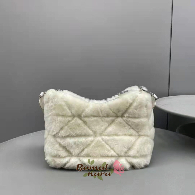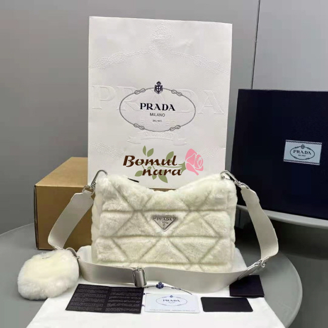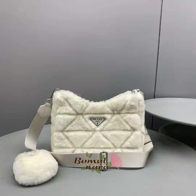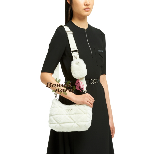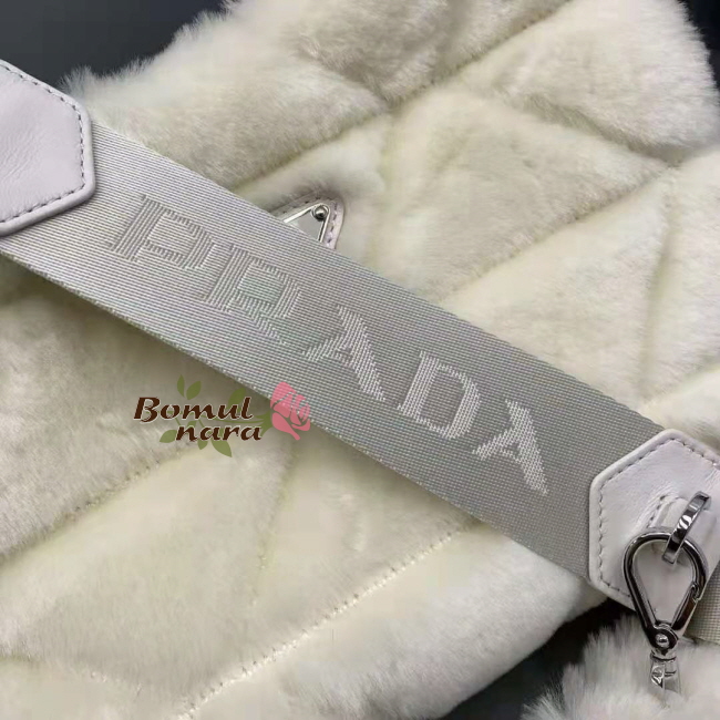 [스페셜오더]PRADA-1BC151 프라다 화이트 트라이앵글 스티치 시어링 숄더 백 #남자레플리카쇼핑몰