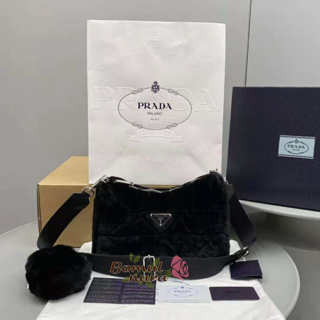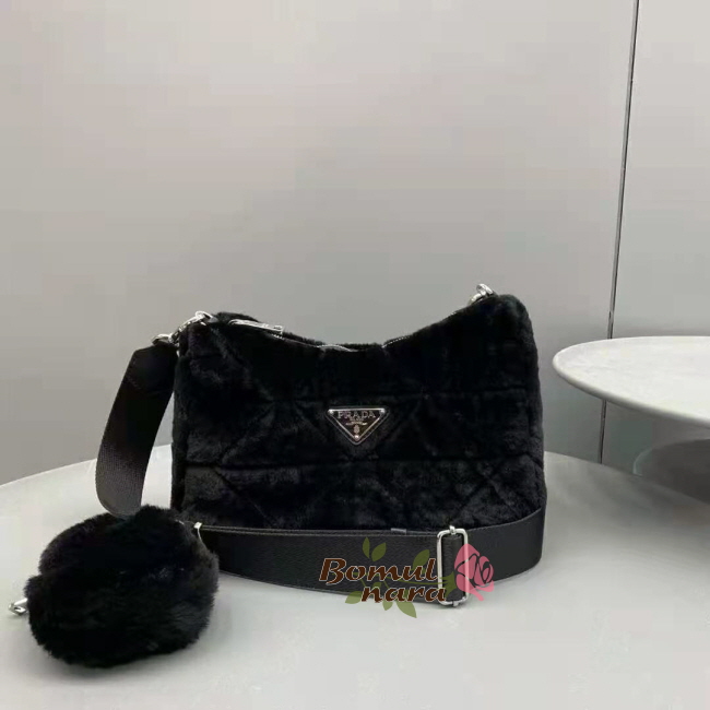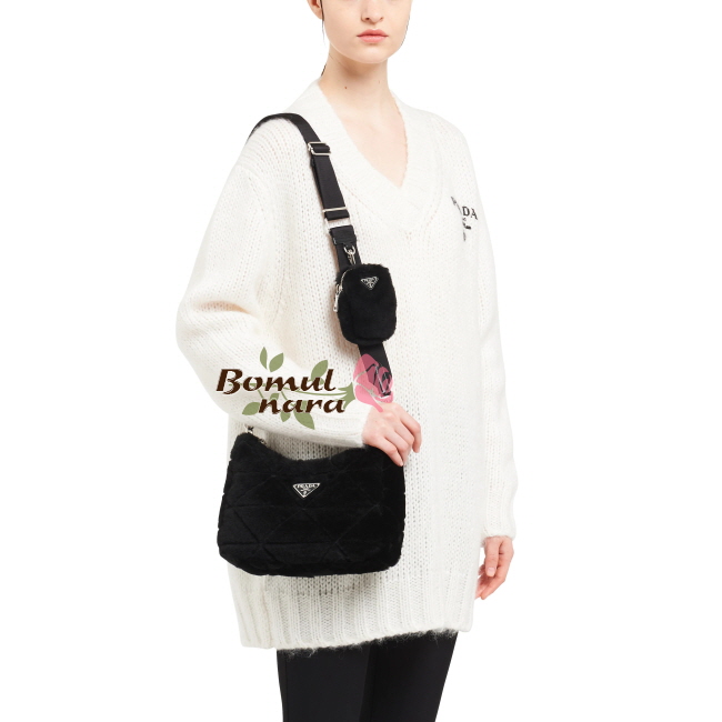 [스페셜오더]PRADA-1BC151 프라다 블랙 트라이앵글 스티치 시어링 숄더 백 #여성레플리카쇼핑몰