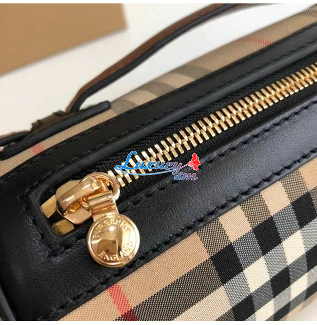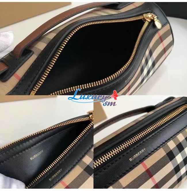 버버리 아카이브 빈티지 체크가 연출된 면과 투톤 가죽