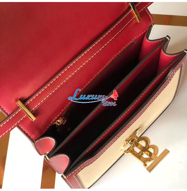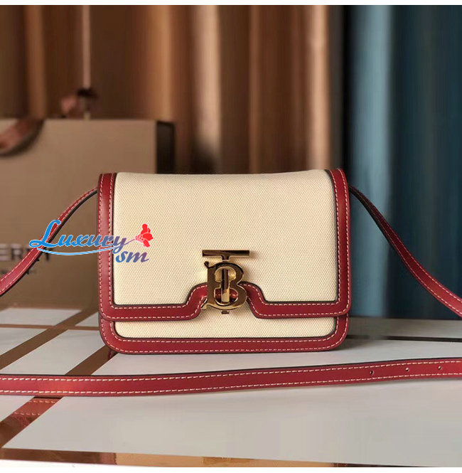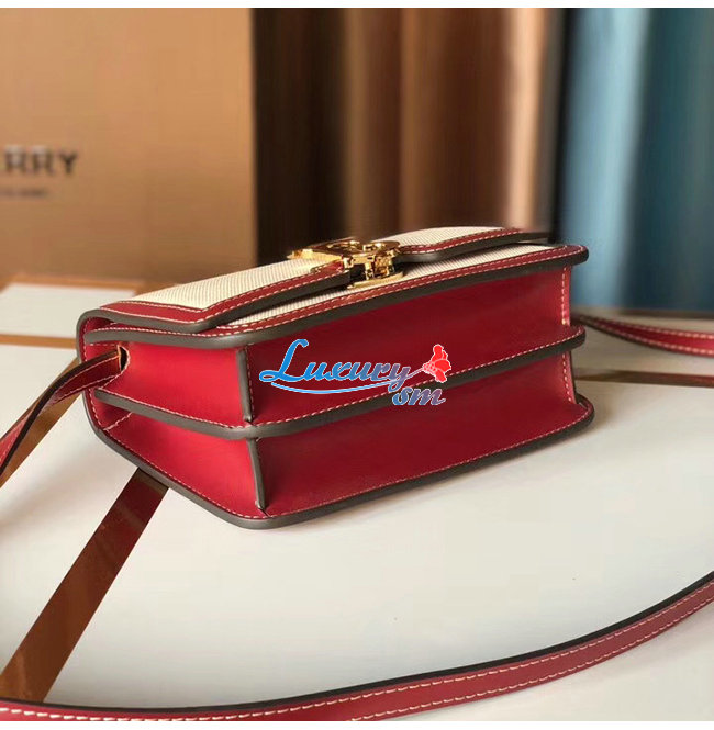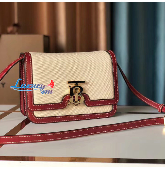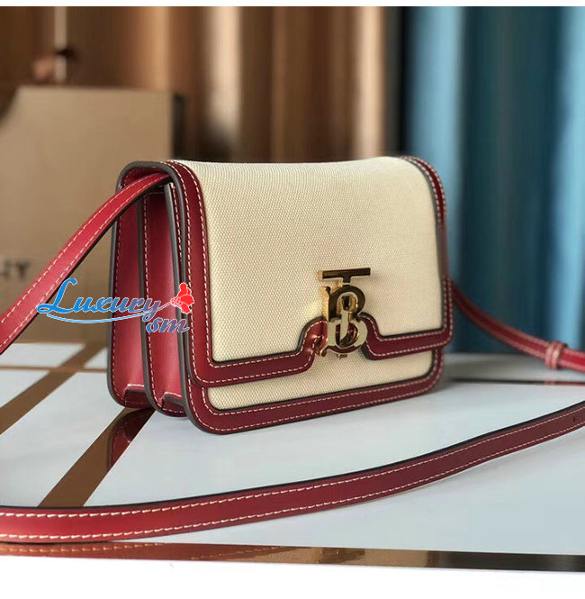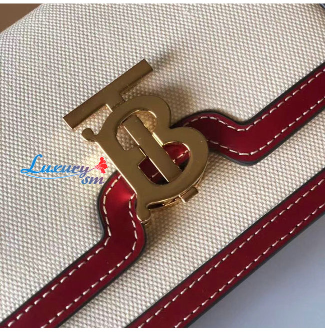 [스페셜오더]BURBERRY-80271781 버버리 내추럴/다크 카민 투톤 캔버스 레더 스몰 TB 백