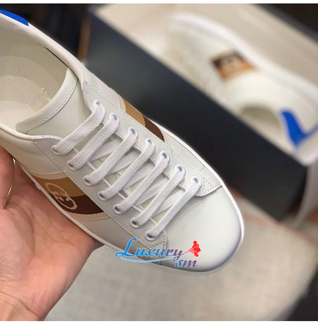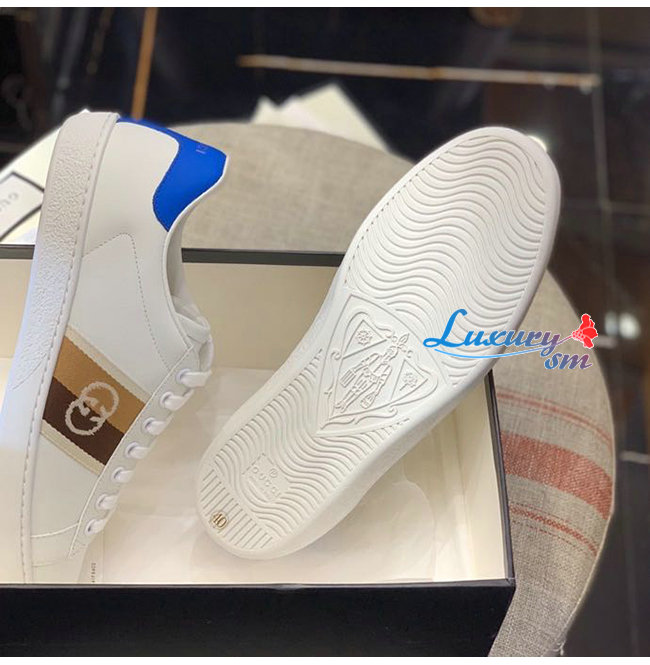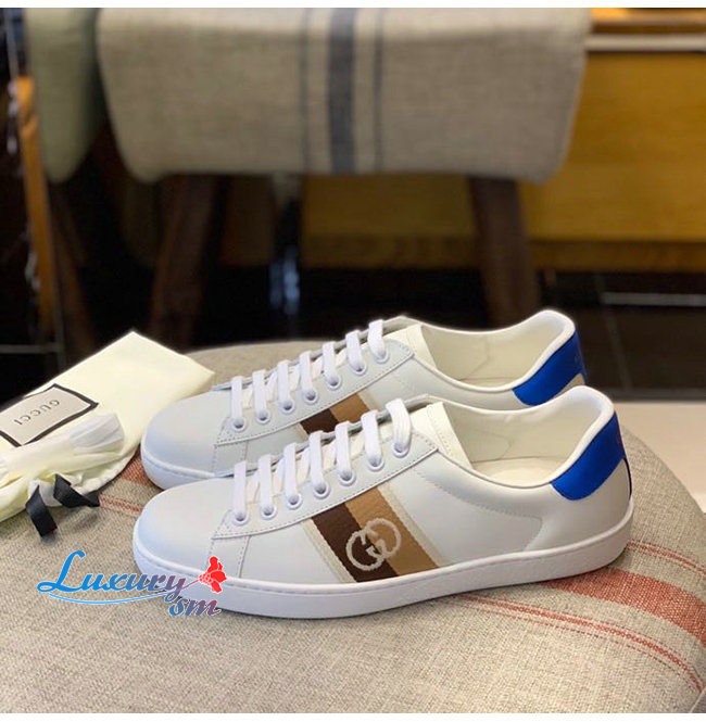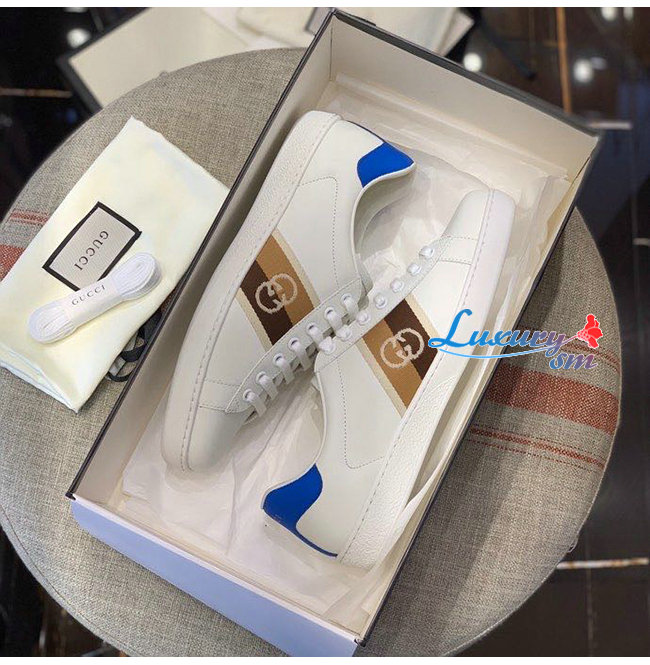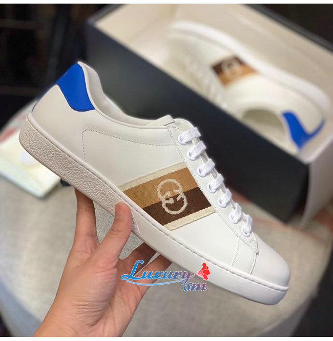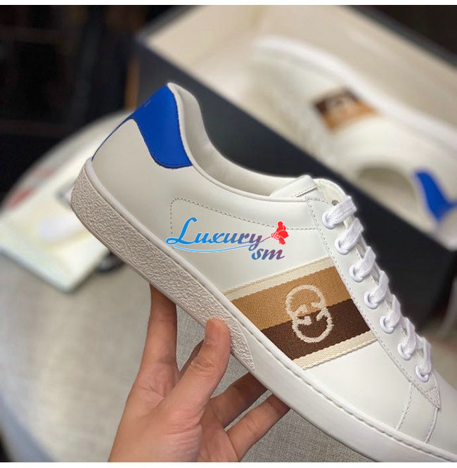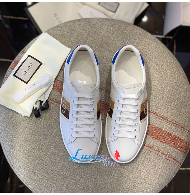 GUCCI-650992 9061 구찌 에이스 화이트/블루 가죽 인터로킹 G 디테일 스니커즈