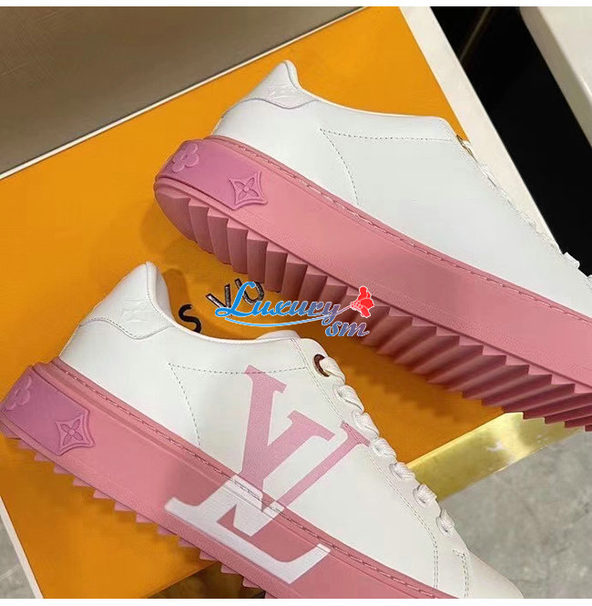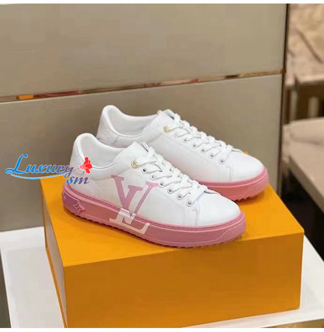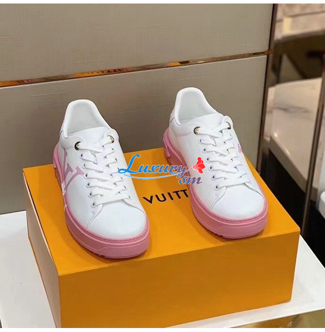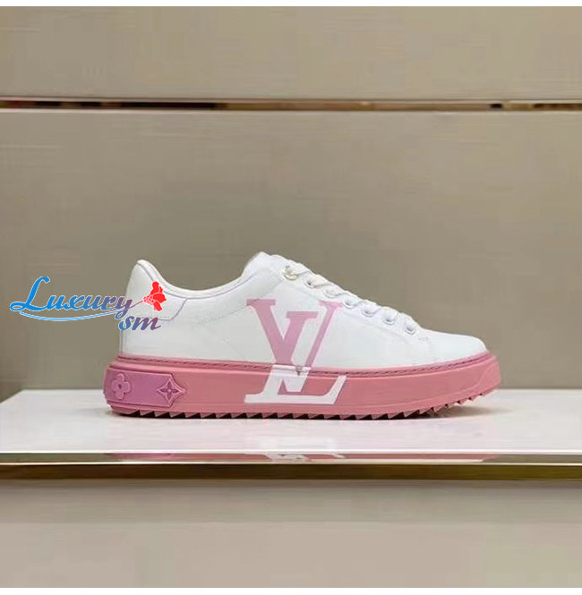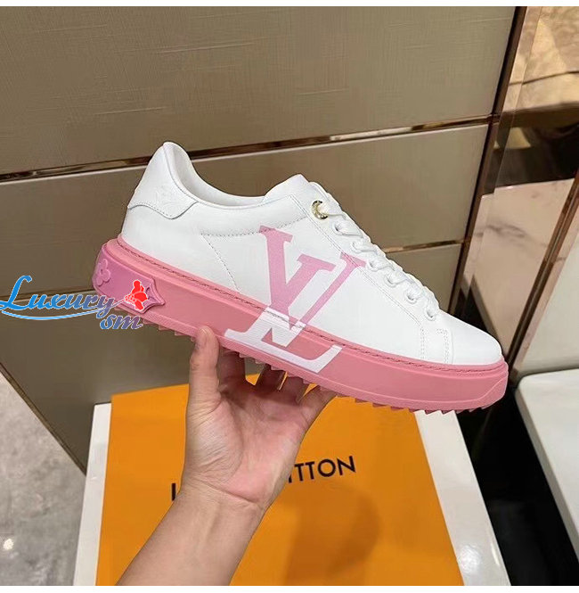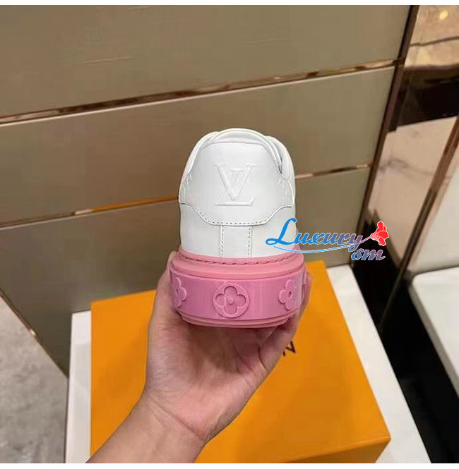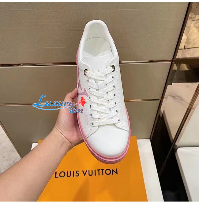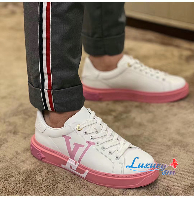 LOUIS VUITTON-1A8MZR 루이비통 화이트/라이트 핑크 송아지 가죽 타임 아웃 스니커즈 남여공용