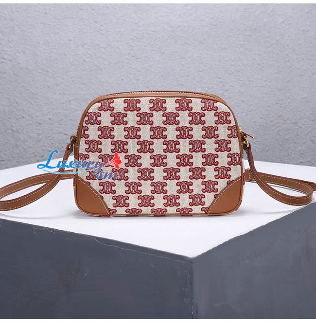 [스페셜오더]CELINE-194332 셀린느 브라운/핑크 트리오페 자수 카메라 백