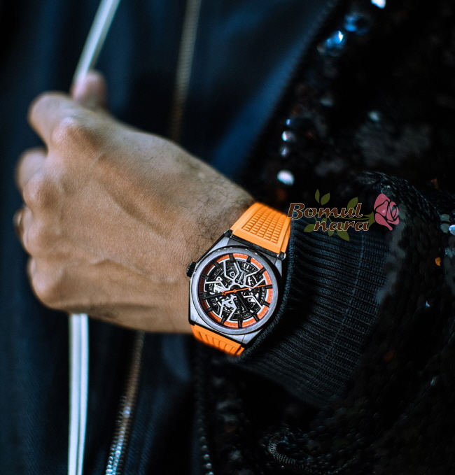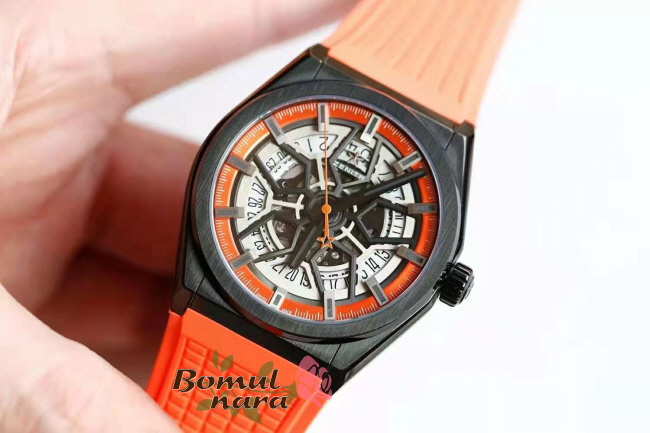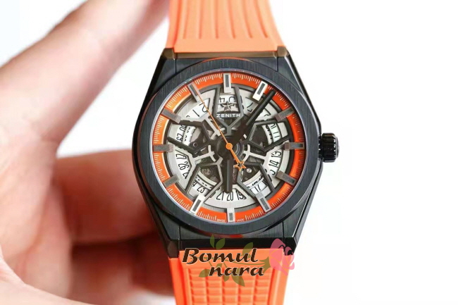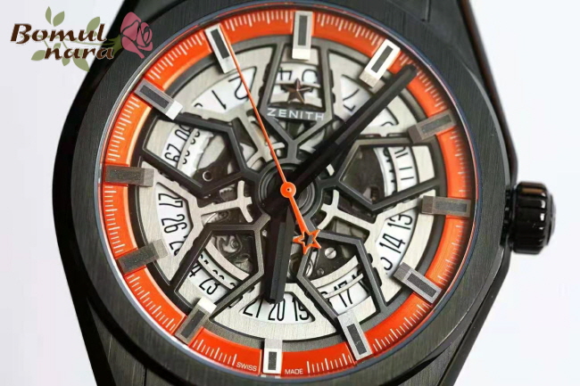 다이얼 색상 : 오렌지 컬러의 오픈워크