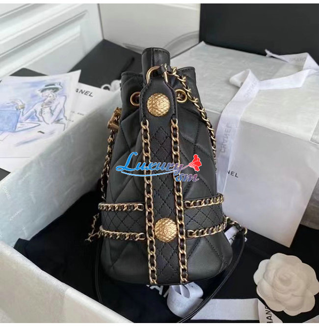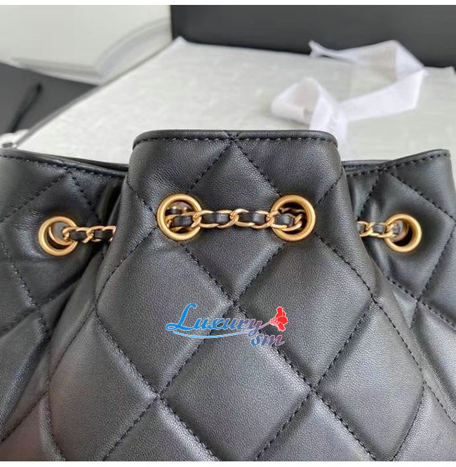 [스페셜오더]CHANEL-AS2252 샤넬 블랙 램스킨 골드 메탈 라지 드로스트링 백