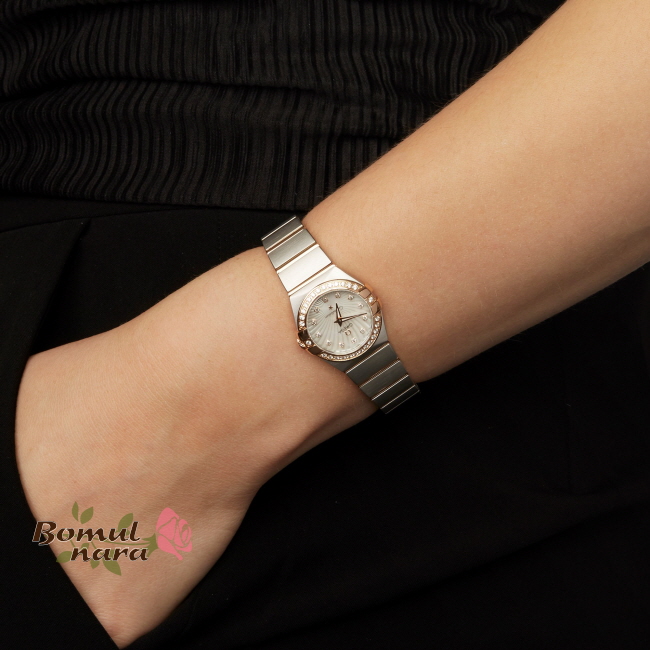 [스페셜오더]OMEGA-오메가 컨스텔레이션 레드 골드 다이아 베젤 인덱스 스틸 화이트 레이디스워치 27mm