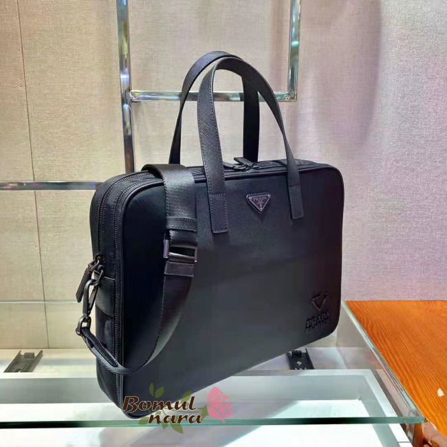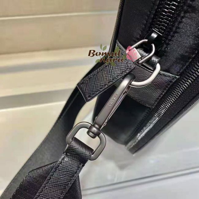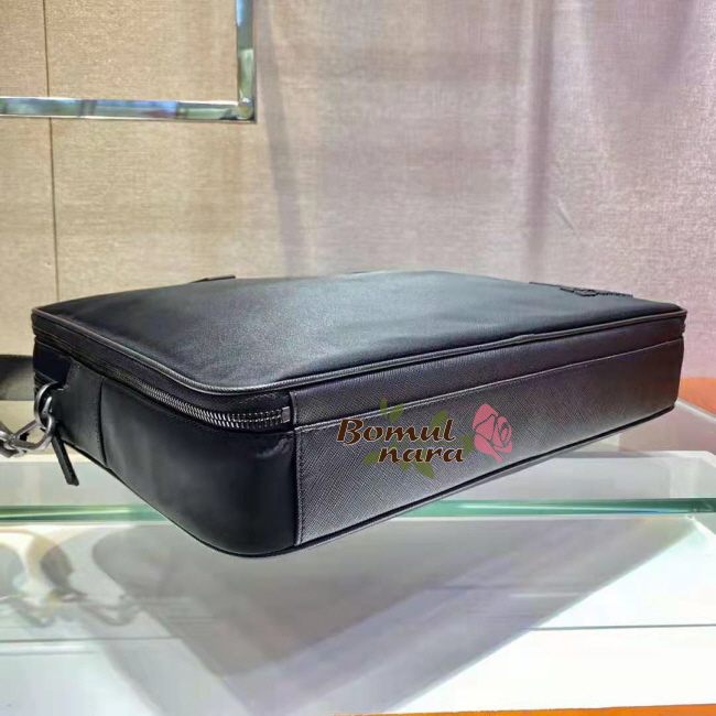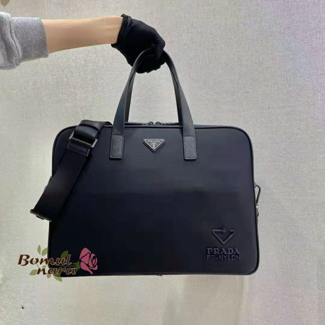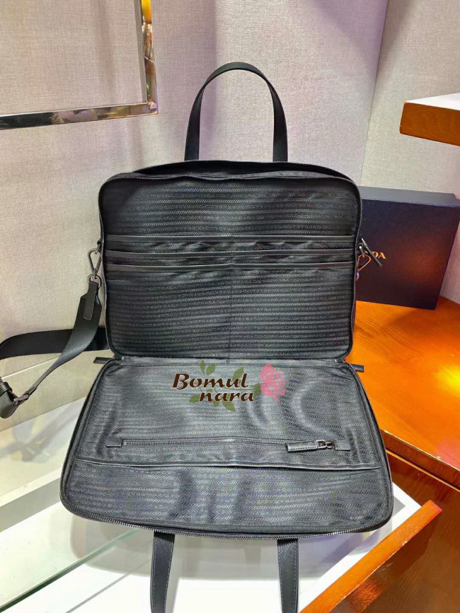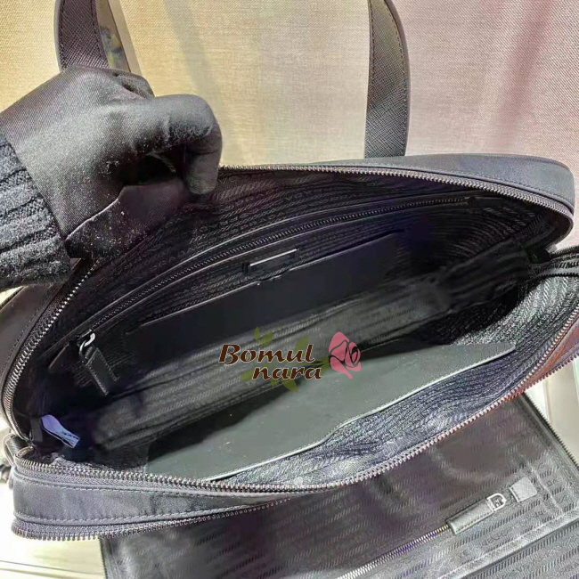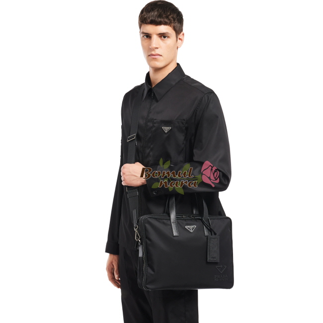 [스페셜오더]PRADA-2VE005 프라다 블랙 리 나일론 사피아노 가죽 브리프케이스