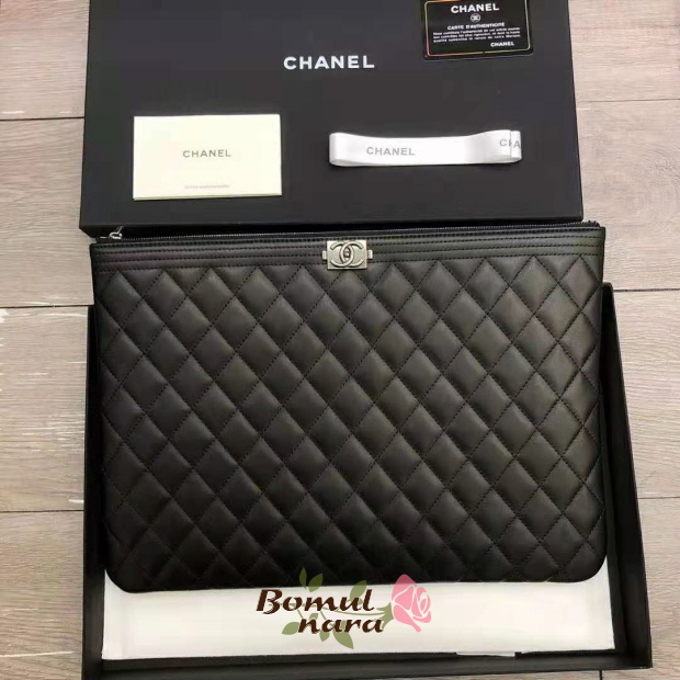 [스페셜오더]CHANEL-A84407 샤넬 블랙 램스킨 실버 BOY CHANEL 라지 파우치