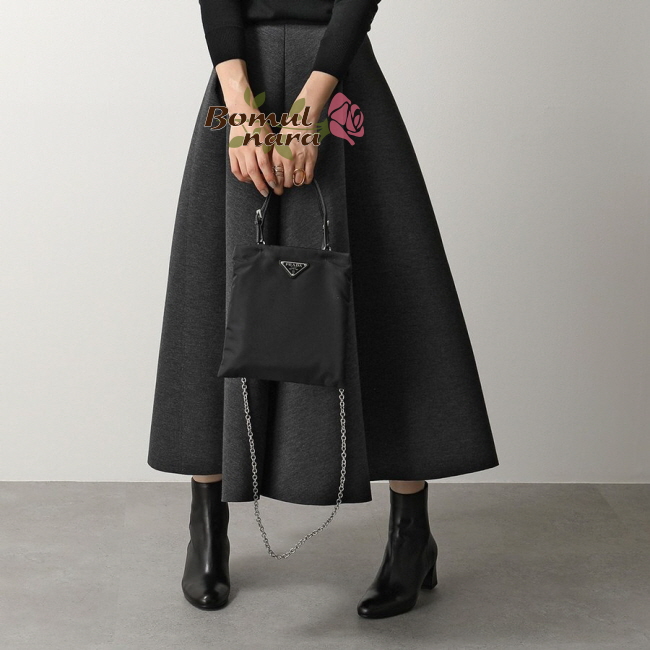 프라다의 아이코닉한 패브릭으로 제작했으며 체인 숄더