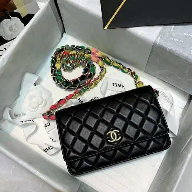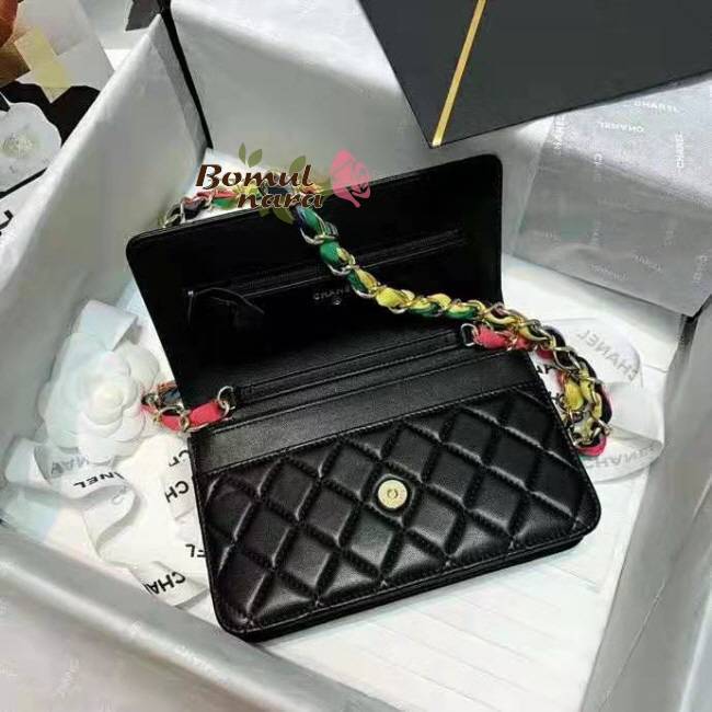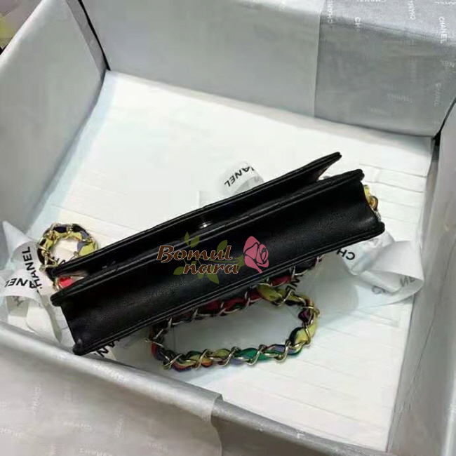 [스페셜오더]CHANEL-AP2022 샤넬 블랙 램스킨 CC로고 리본 체인 지갑