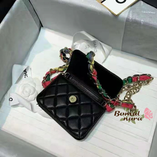[스페셜오더]CHANEL-AP2054 샤넬 블랙 램스킨 CC로고 리본 체인 미니 벨트 백