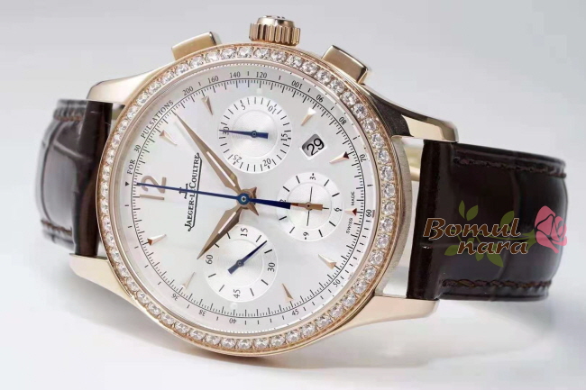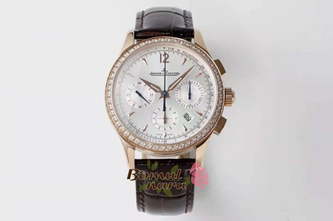 [스페셜오더]JAEGER LECOULTRE-예거 르쿨트르 마스터 크로노그래프 핑크 골드 다이아 베젤 드레스 워치 40mm