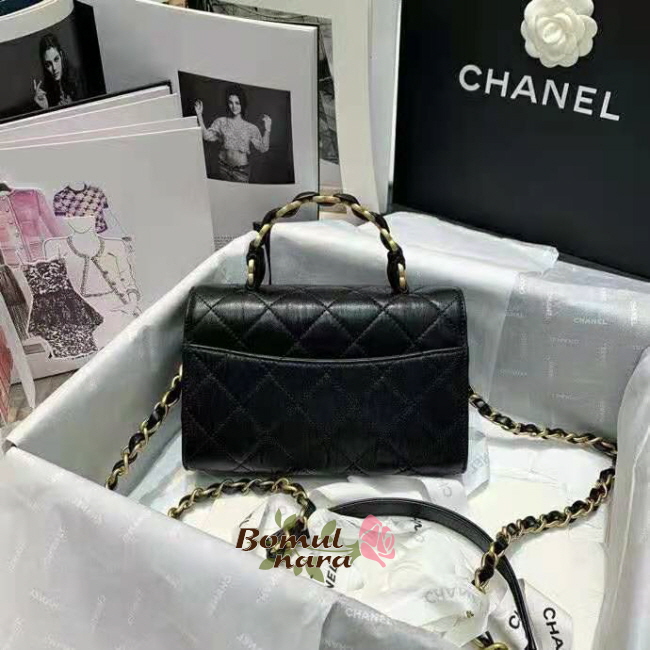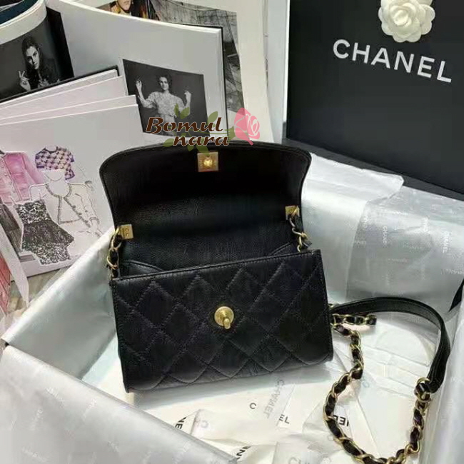 [스페셜오더]CHANEL-AS2477 샤넬 블랙 크럼플드 램스킨 CC로고 핸들 장식 미니 플랩 백
