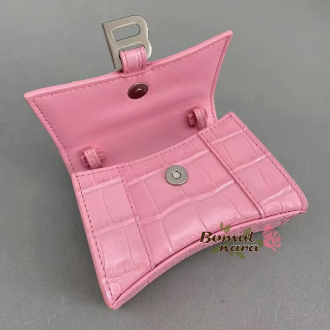 [스페셜오더]BALENCIAGA-6373721 발렌시아가 핑크 아워글래스 크로커다일 엠보싱 미니 탑 핸들 백