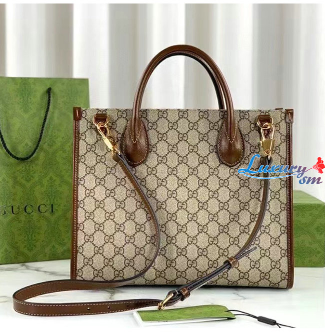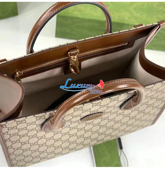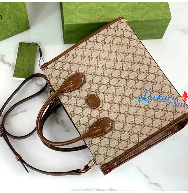 GG 수프림 캔버스 소재에 브라운 가죽 트리밍이