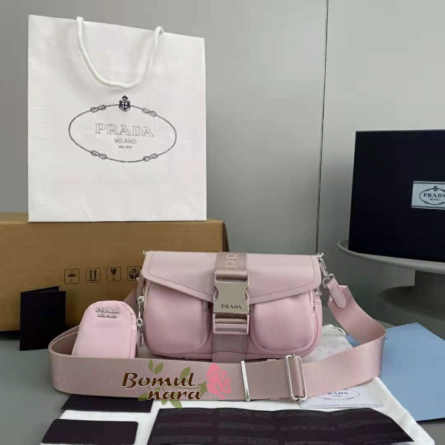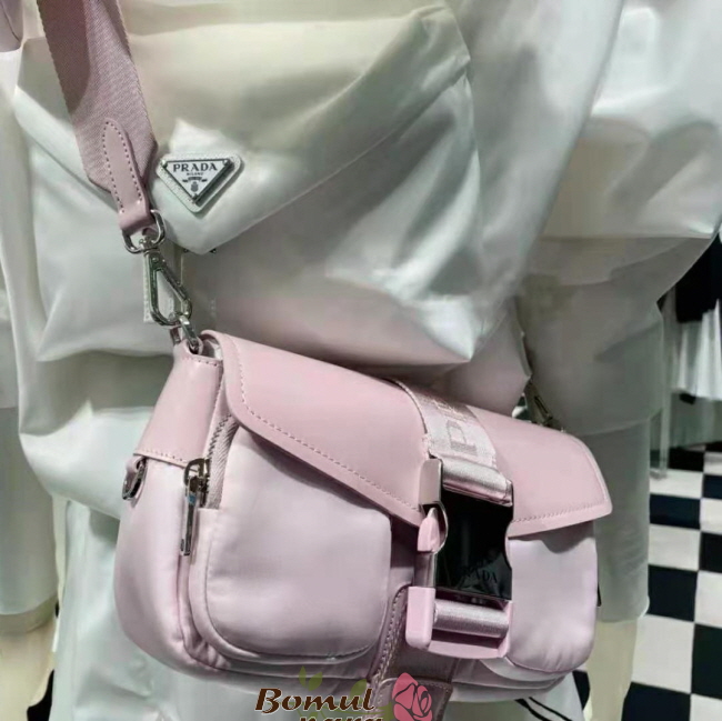 [스페셜오더]PRADA-1BD295 프라다 핑크 나일론 브러시드 가죽 포켓 숄더 백