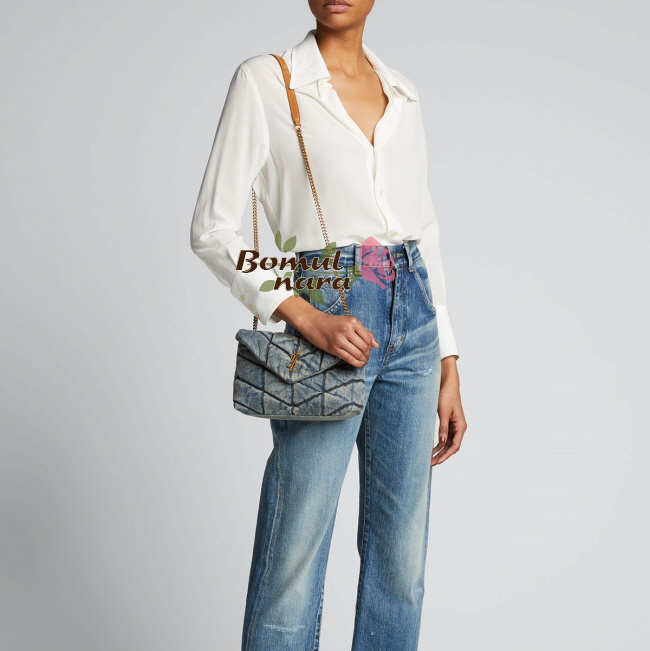 [스페셜오더]SAINT LAURENT-5774752 생 로랑 블루 빈티지 데님 푸퍼 미디엄 백