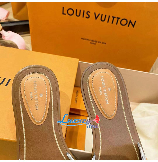 LOUIS VUITTON-1A580B 루이비통 화이트/카키/브라운 모노그램 락 잇 플랫 뮬