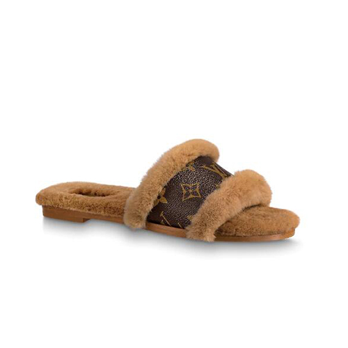 LOUIS VUITTON-1A876J 루이비통 브라운 밍크 퍼 모노그램 디테일 락 잇 플랫 뮬