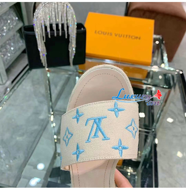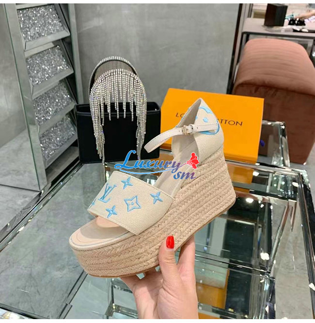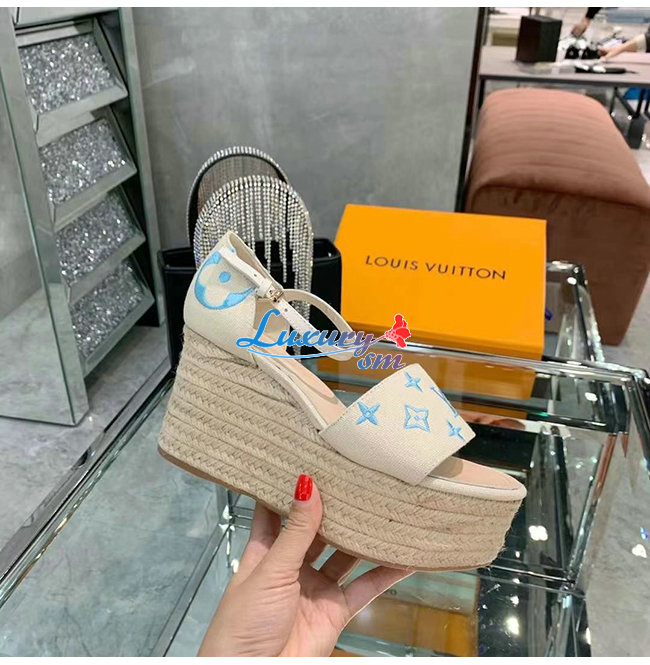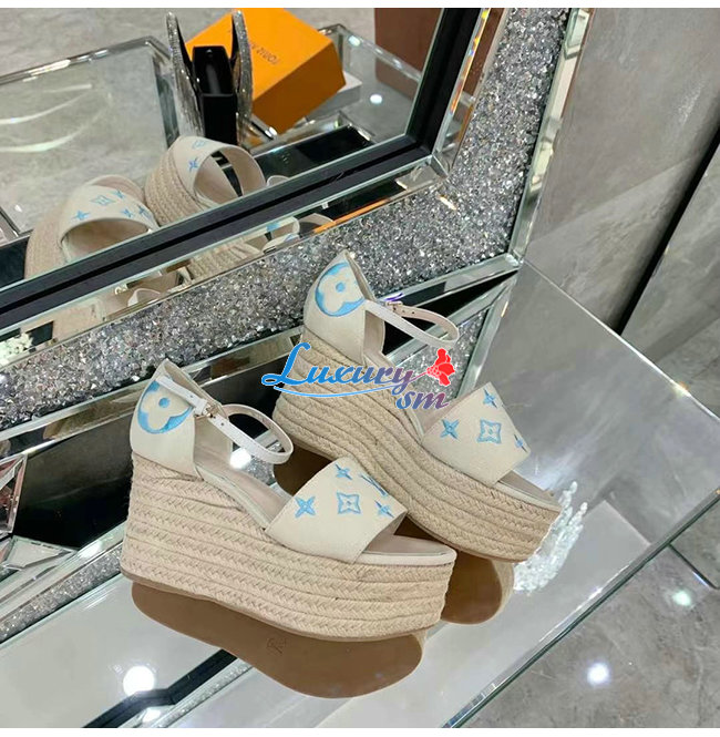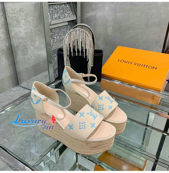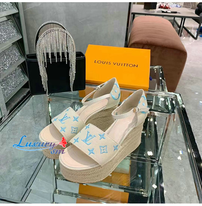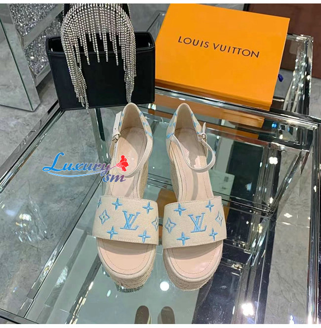 LOUIS VUITTON-1A8GPC 루이비통 블루 모노그램 스타보드 웨지 샌들