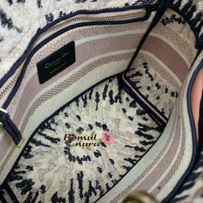 Tie & Dior모티브를 부드러운톤의 전체 자수로 담은 가방으로