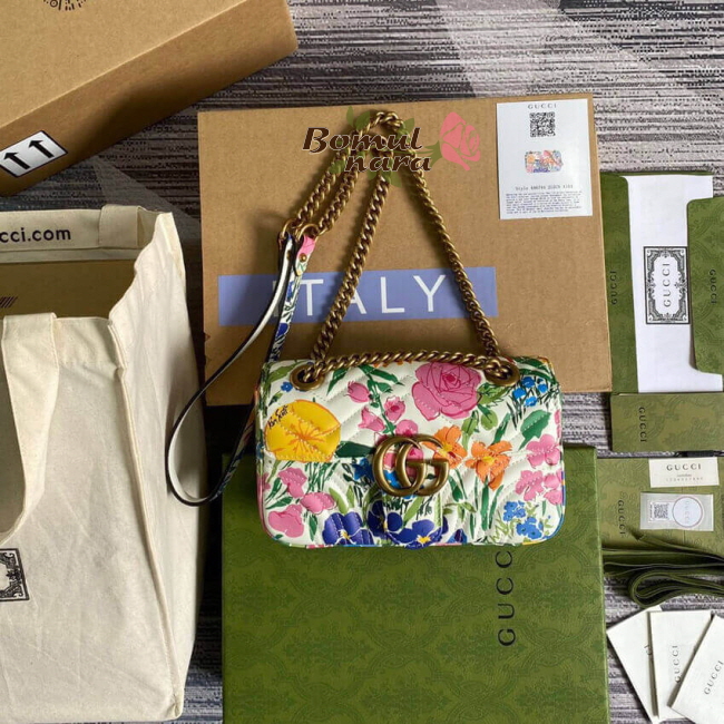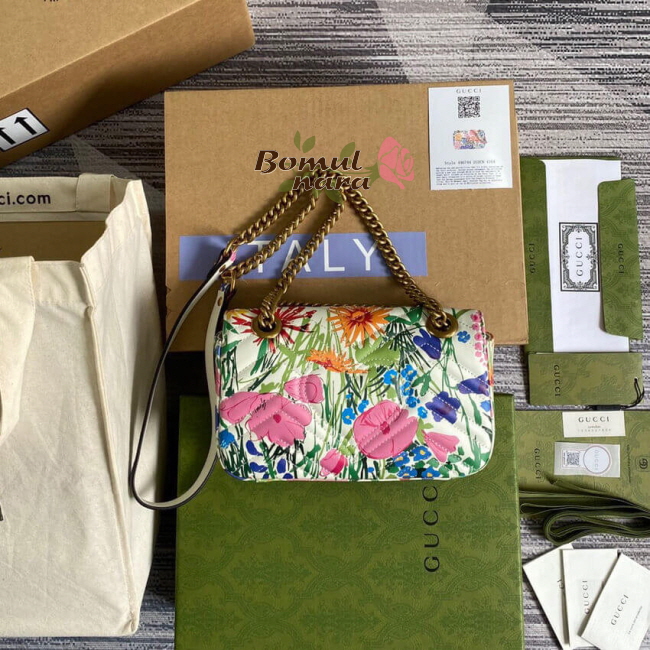 [스페셜오더]GUCCI-446744 2535 구찌 GG 마몽 브라운 마틀라세 가죽 미니 숄더 백