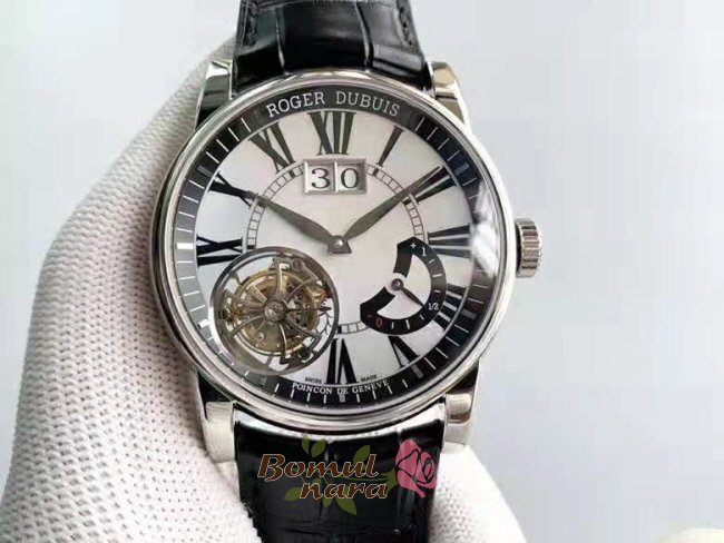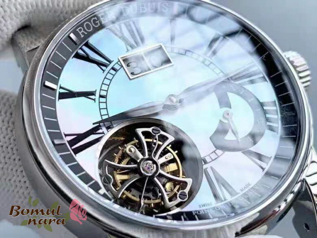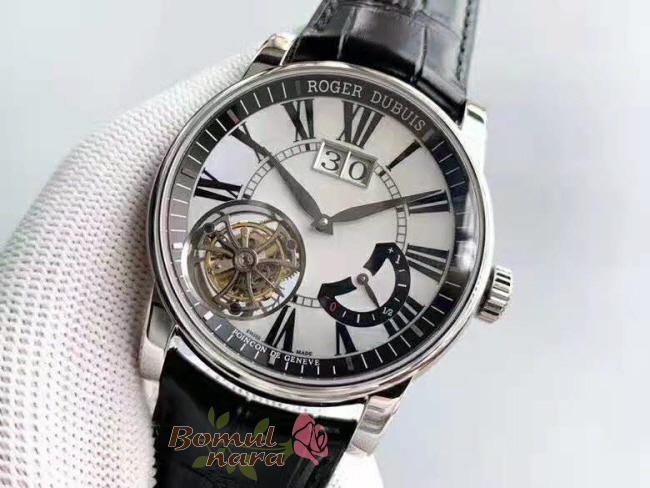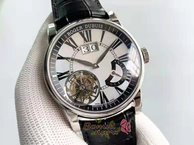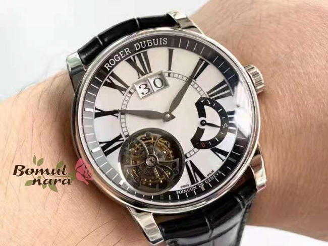 [스페셜오더]ROGER DUBUIS-로저 드뷔 오마주 플라잉 투르비옹 빅 데이트 실버 다이얼 45mm ***임시품절***