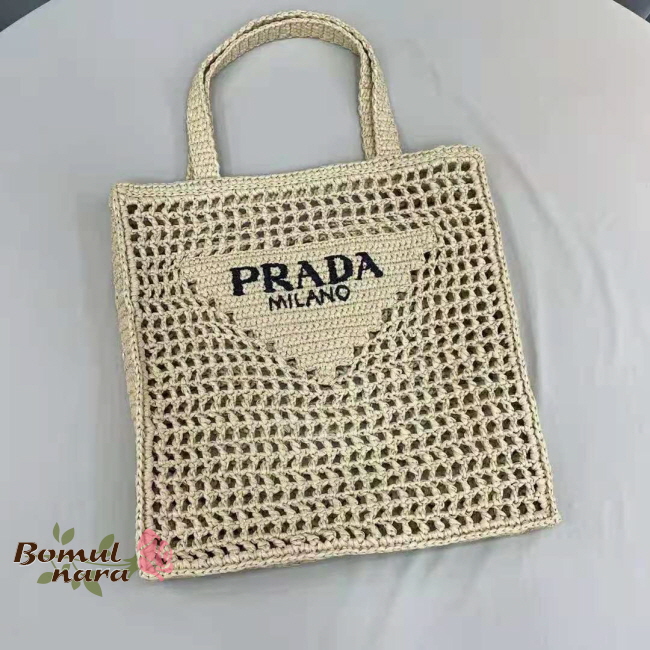[스페셜오더]PRADA-1BG393 프라다 화이트 라피아 토트 백