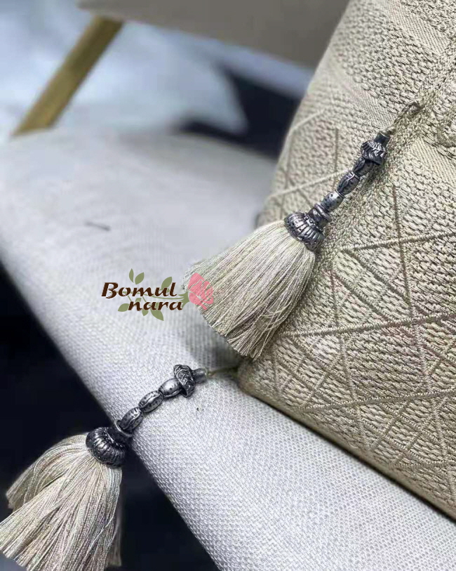 ▶앤틱 실버 피니시 메탈 디테일 폼폼