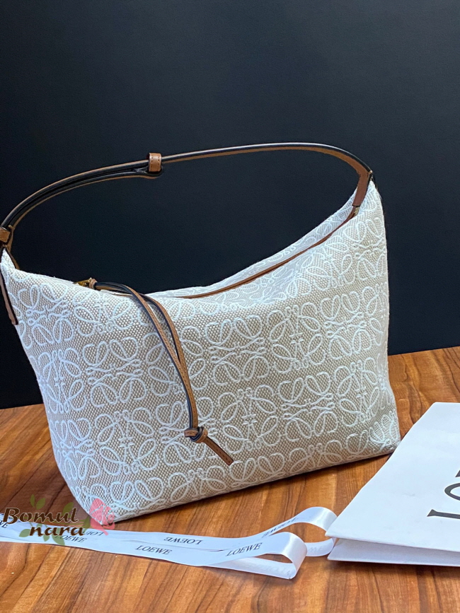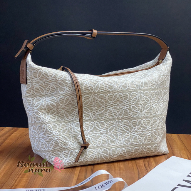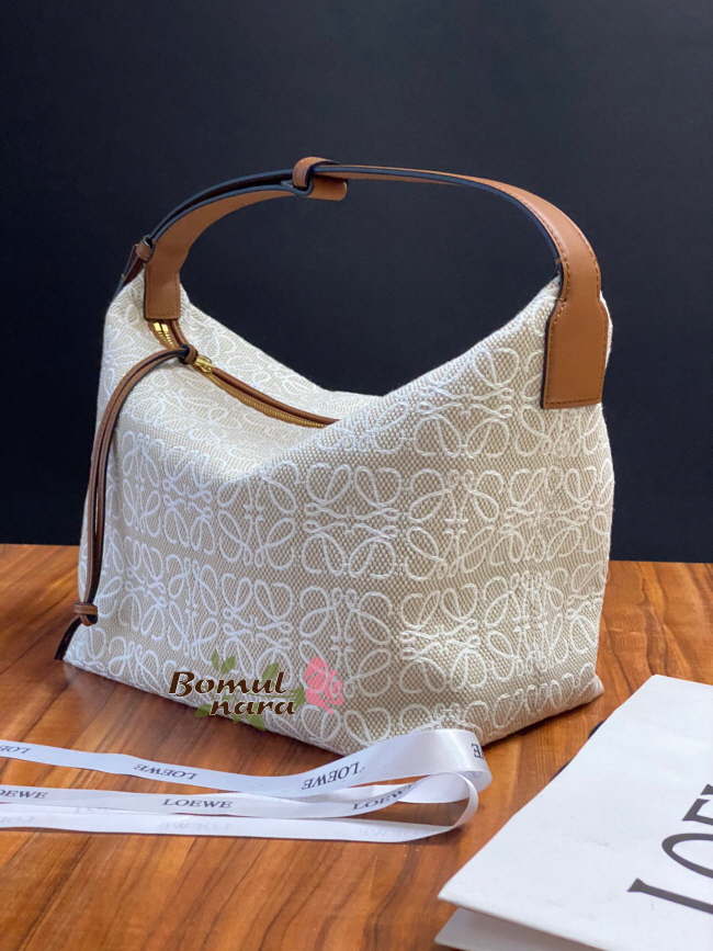 [스페셜오더]LOEWE-A907K 로에베 Ecru&Tan 아나그램 자수 미디엄 CUBI 숄더백