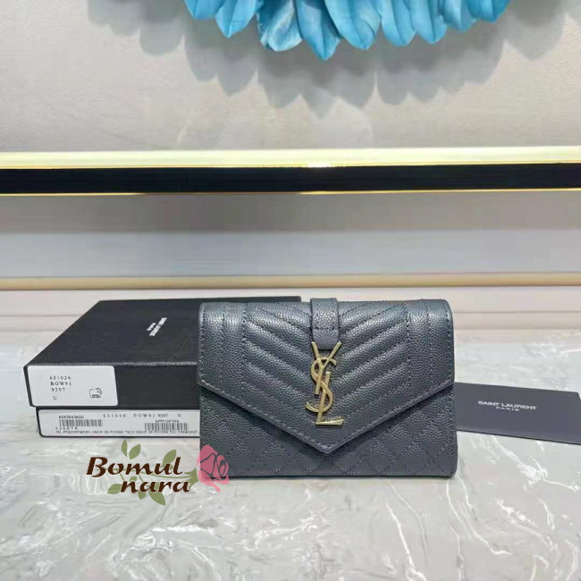 SAINT LAURENT-651026 생 로랑 다크 그린 믹스 마틀라세 스몰 엔벨로프 지갑