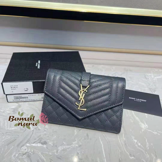 SAINT LAURENT-651026 생 로랑 블랙 믹스 마틀라세 스몰 엔벨로프 지갑 가격 : 160,000원