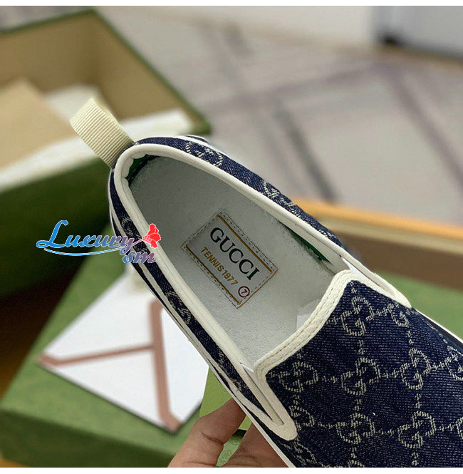 에코 워시드 자카드 데님 구찌 1977 슬립온 스니커즈