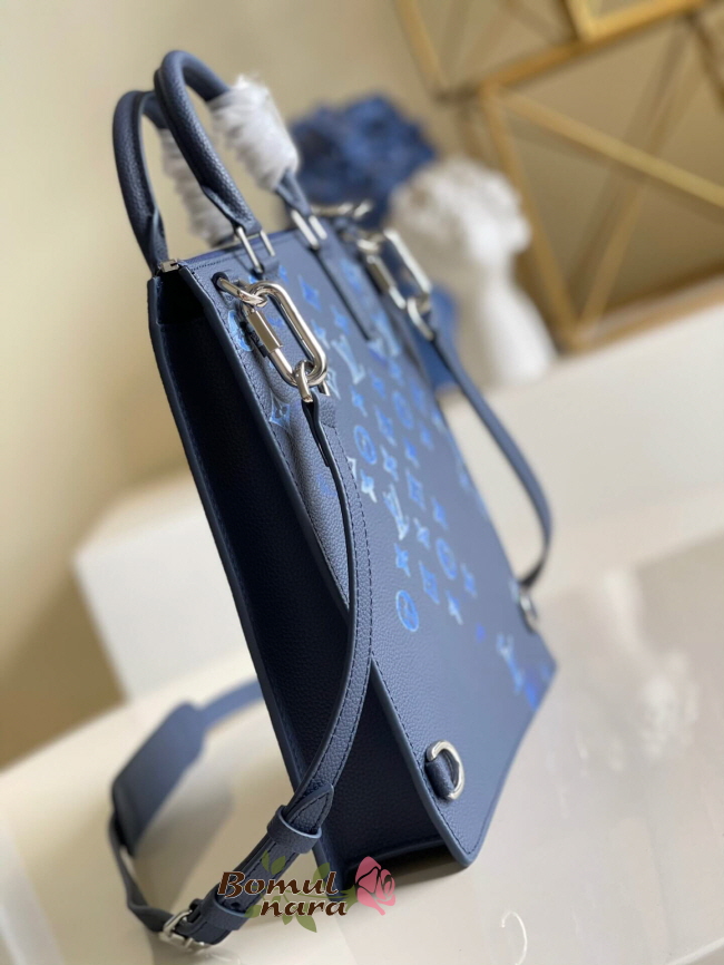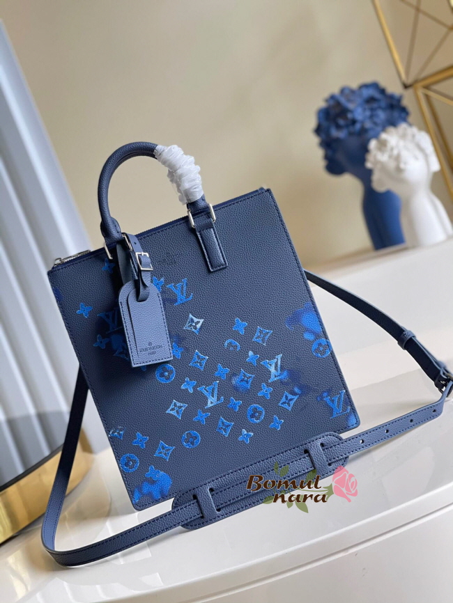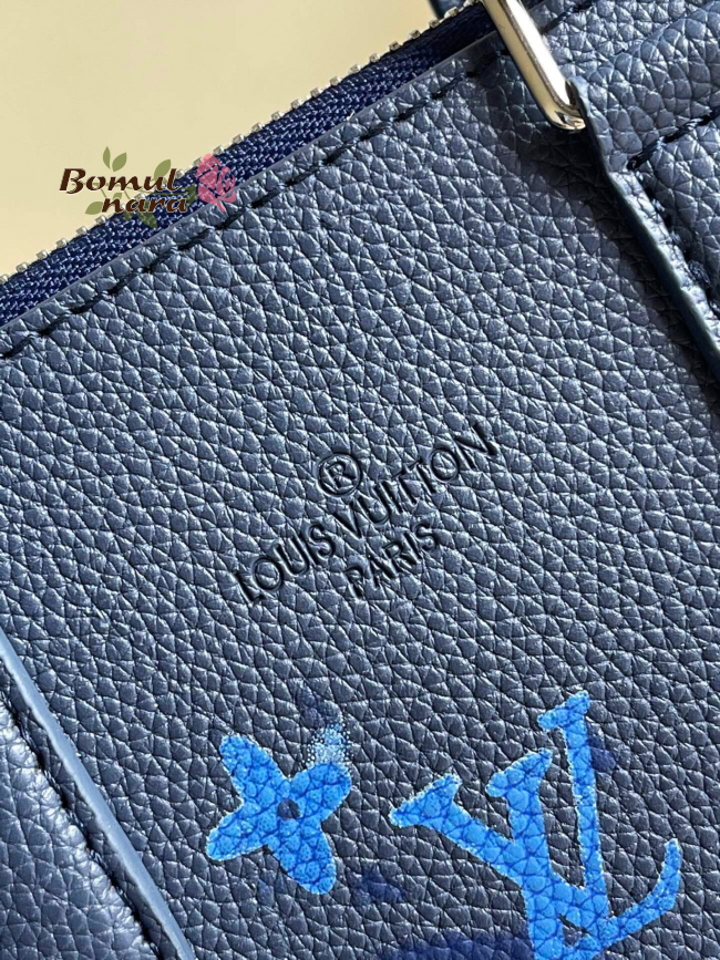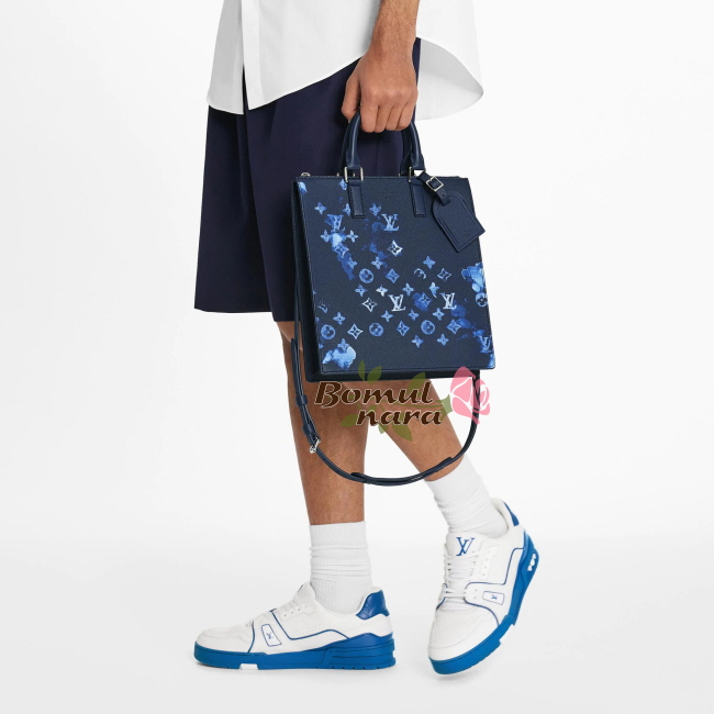 블루 워터컬러 모노그램 캔버스 / 카우하이드 가죽 트리밍