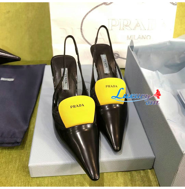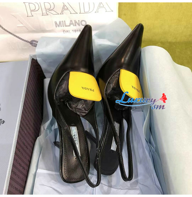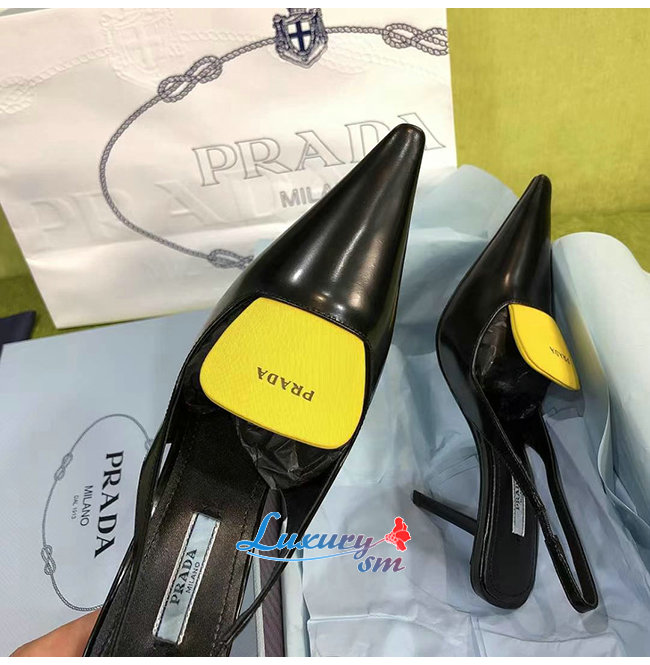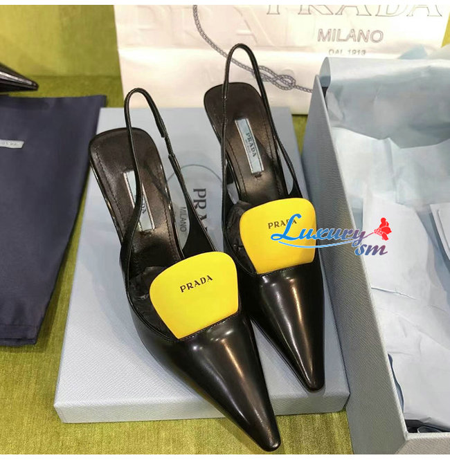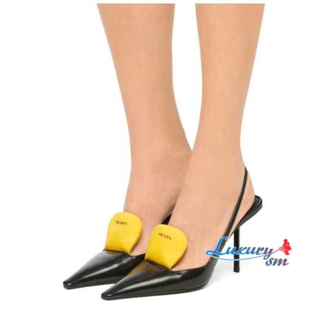 PRADA-1I561M 프라다 블랙/옐로우 블러시드 가죽 슬링백 펌프스