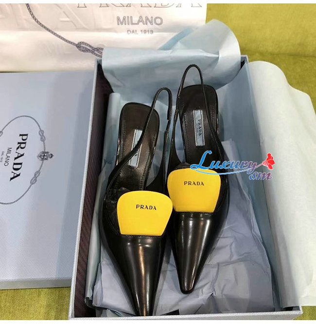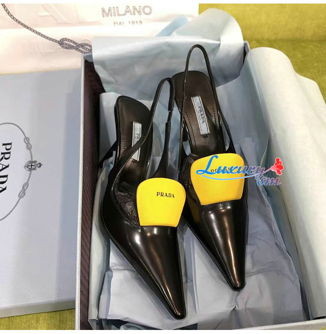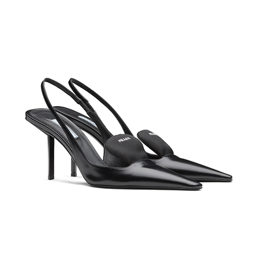 PRADA-1I561M 프라다 블랙 블러시드 가죽 슬링백 펌프스