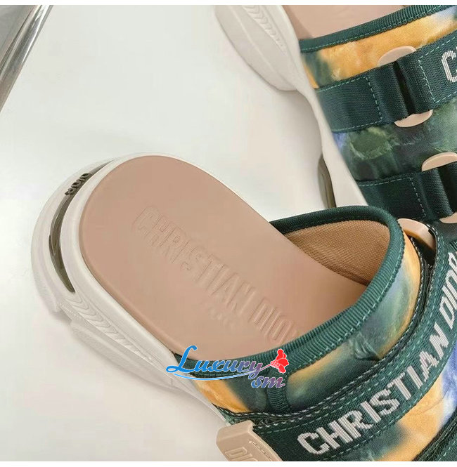 DIOR-KCQ351 디올 그린 Tie & Dior 테크니컬 패브릭 D-WANDER 뮬 여성용
