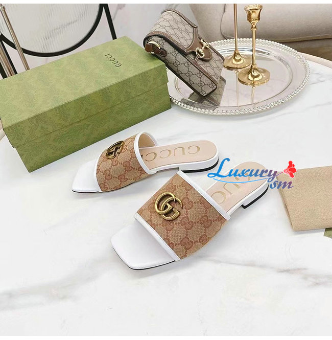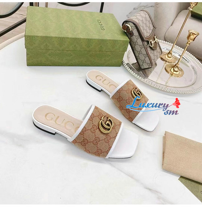 GUCCI-619893 9795 구찌 화이트 더블 G 슬라이드 샌들
