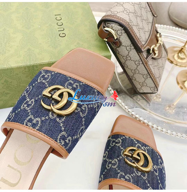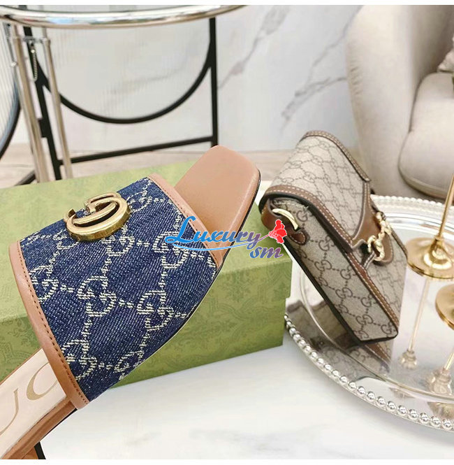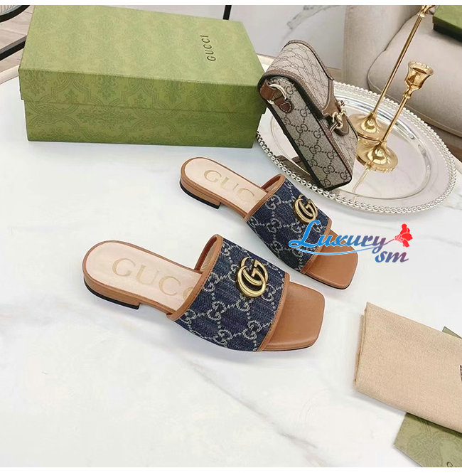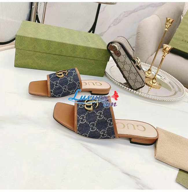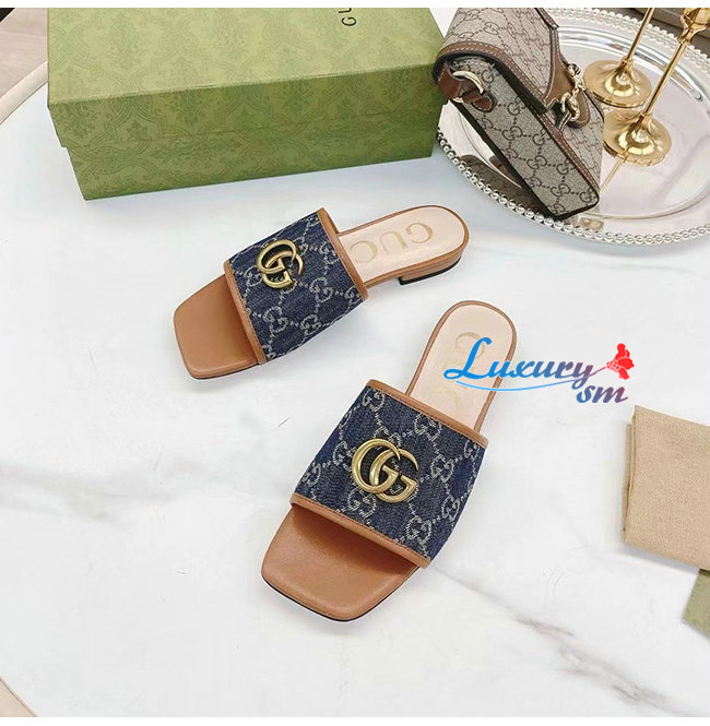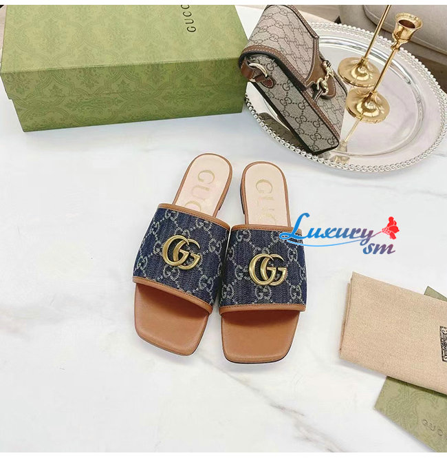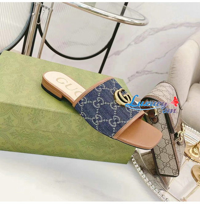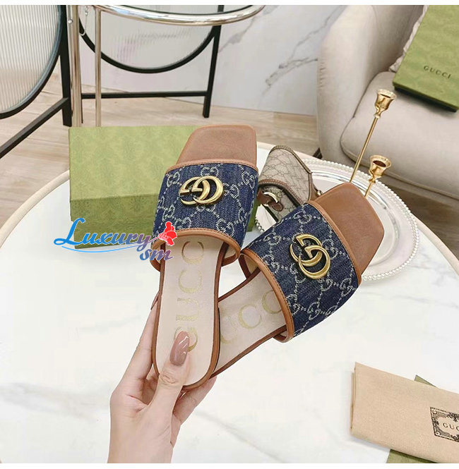 GUCCI-647630 4462 구찌 블루 더블 G 슬라이드 샌들