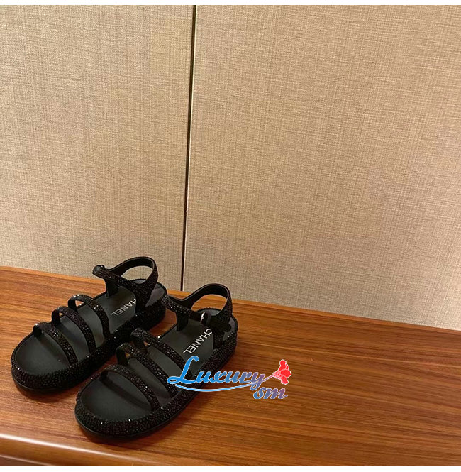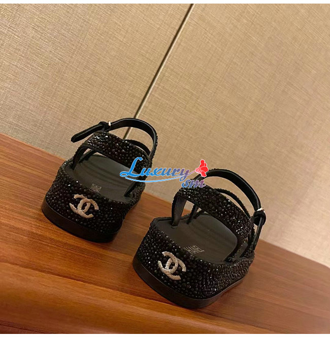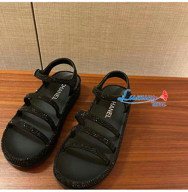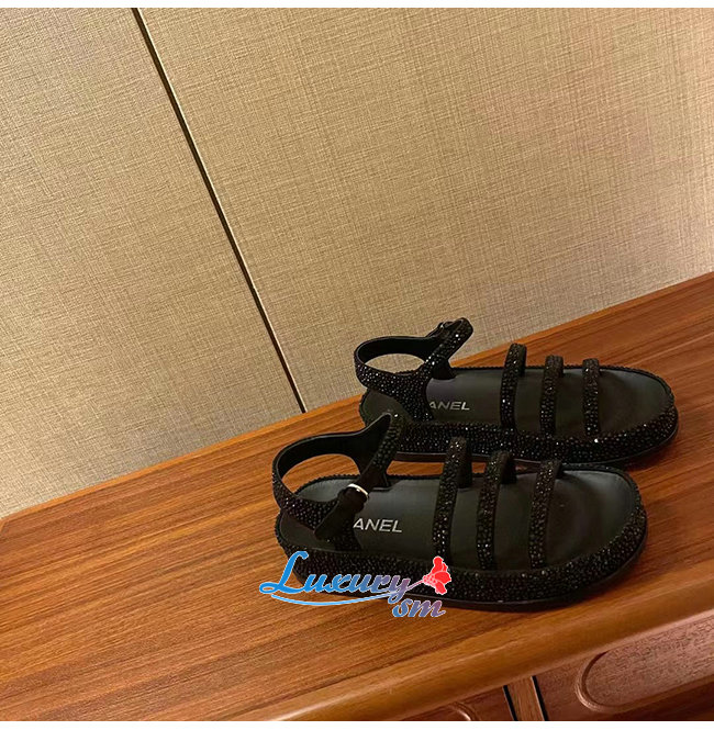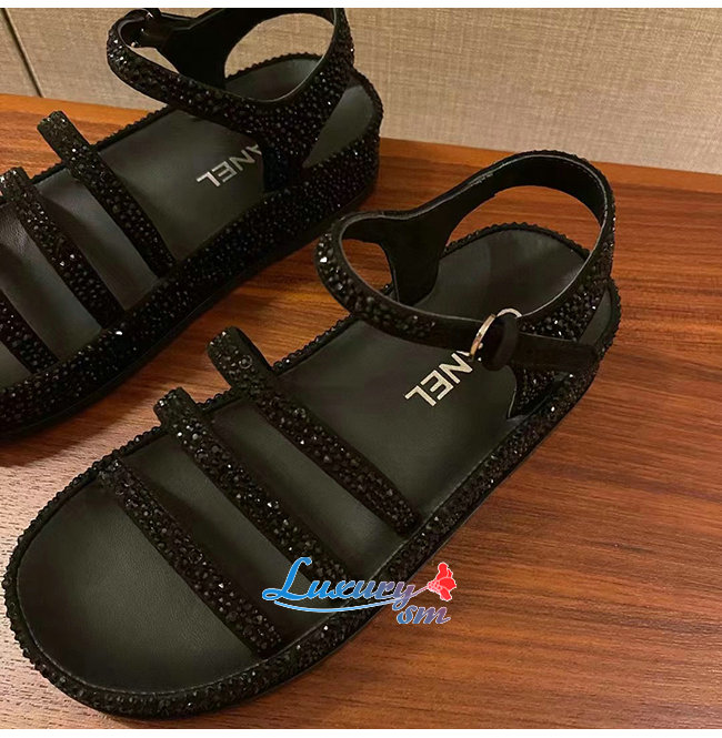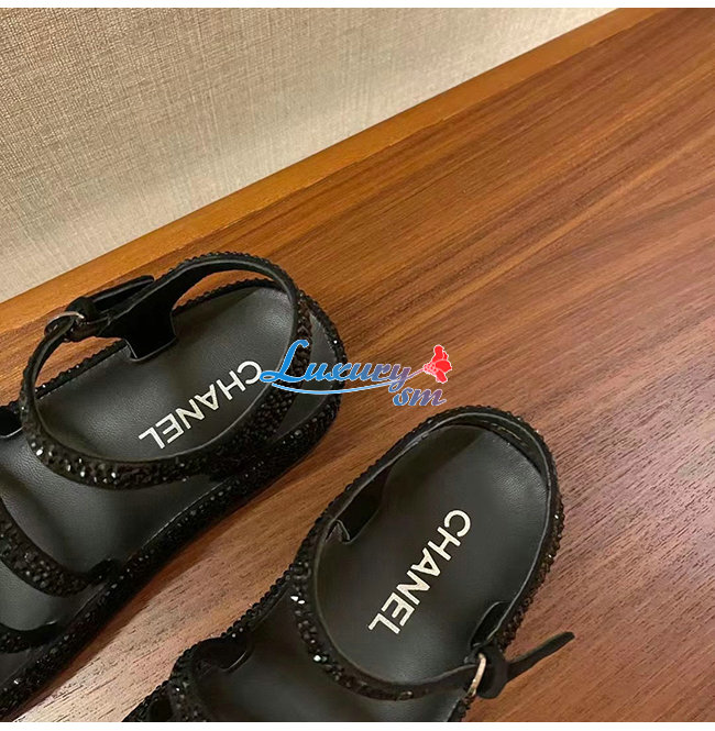 CHANEL-G37140 샤넬 블랙 스웨이드 고트스킨 스트라스 샌들