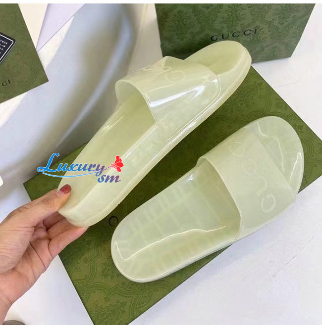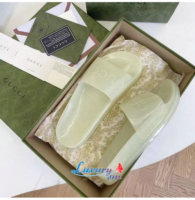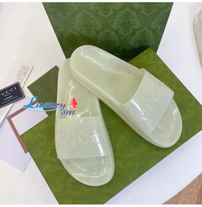 GUCCI-657983 8300 구찌 투명 구찌 로고 장식 슬라이드 샌들 남여공용