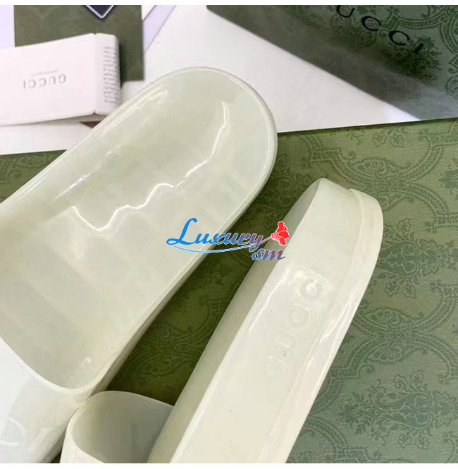 GUCCI-657983 8758 구찌 아이보리 구찌 로고 장식 야광 슬라이드 샌들 남여공용